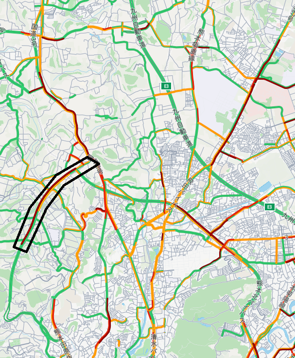 #熊本西環状道路 は、県警の交通管理リンクになってないんですが、今後もそのままなんですかね。。交通量のオープンデータが取れない。 そういえば日本道路交通情報センターの図にも表示されない。このへん、国道じゃないと弱くなりがちなんですよね。tmt.or.jp/research/index… pic.x.com/nATRVewURv
