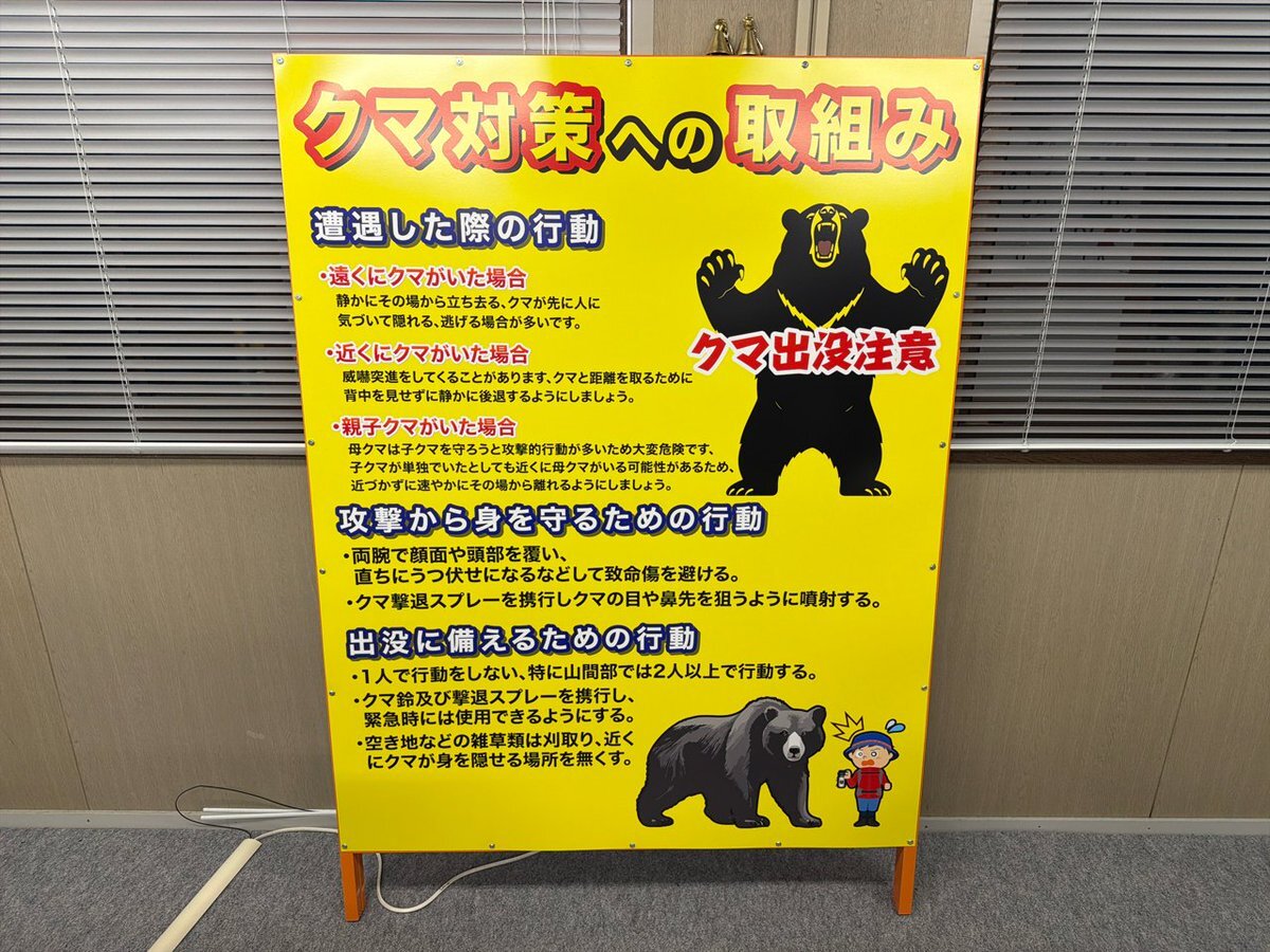 県内全域を対象に「クマ出没警報」が発令中です。 河川巡視時において、注意喚起アナウンスを行っているとともに、河川内の安全な工事のため注意看板を設置して喚起しています。 #水しごと #北上川下流河川事務所 #鳴瀬出張所 #熊注意 pic.x.com/1RJbXf0bCc