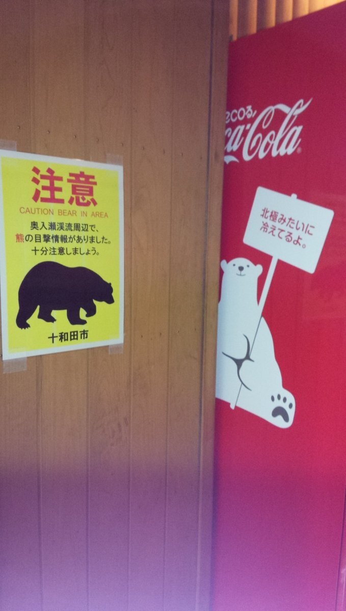 こんばんは👋とみーです🙋♂️ 【番外編】 今日は色々と対応して一区切りがつきましたので、とある施設へ疲れを癒しに♨️ 入口には熊さん注意報が👀 施設の人の話では、あちらこちらで目撃されているとか…ヽ( ̄д ̄;)ノ=3=3=3熊コワイ💦 #熊注意 pic.x.com/mL4MpTCrna