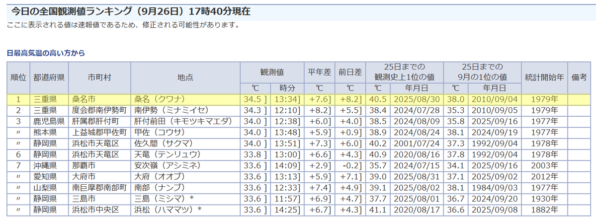 今年6回目の全国トップ! 猛暑日ではなかったとはいえ、前日比で+8.2℃とか気温差もありすぎです… #熱中症対策 #熱中症警戒アラート #熱中症に注意 #熱中症に気を付けて #水分補給 #水分補給をしっかりと #水分補給も忘れずに #医療従事者に感謝 #桑名市 #桑名 #最高気温 #日本で暑い街 pic.x.com/GhaSsuEkNM