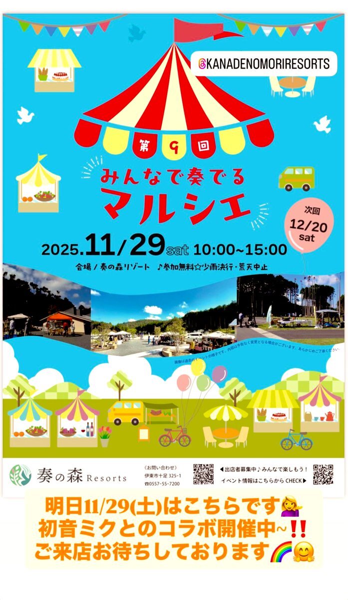 🎪みんなで奏でるマルシェ 11/29(土)伊東 奏で森🌳に出店いたします🌈✨ご来店お待ちしております🍀︎✨ #熱海 #熱海キッチンカー #伊東奏の森 #マルシェ #ほかほかホットサンド pic.x.com/3Lciv9IGDV