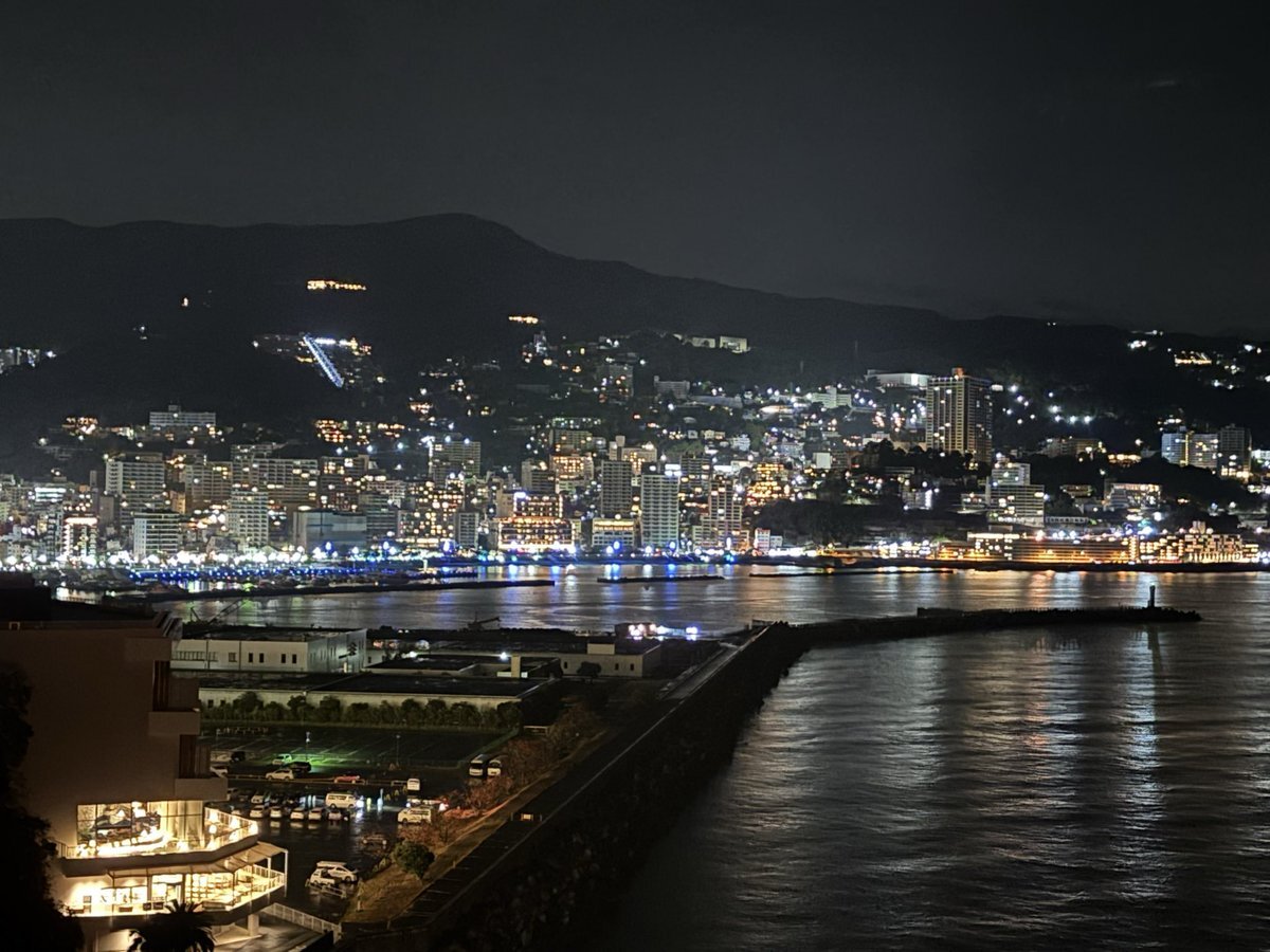 今日は熱海に宿泊 ホテル近くで事故やってて、市内が大渋滞だったので頼朝ラインでお宿到着 雨上がりの夜景が綺麗 明日は鎌倉、横浜の観光して帰京します #熱海 #ホテルニューアカオ pic.x.com/WTwq0CvyYC