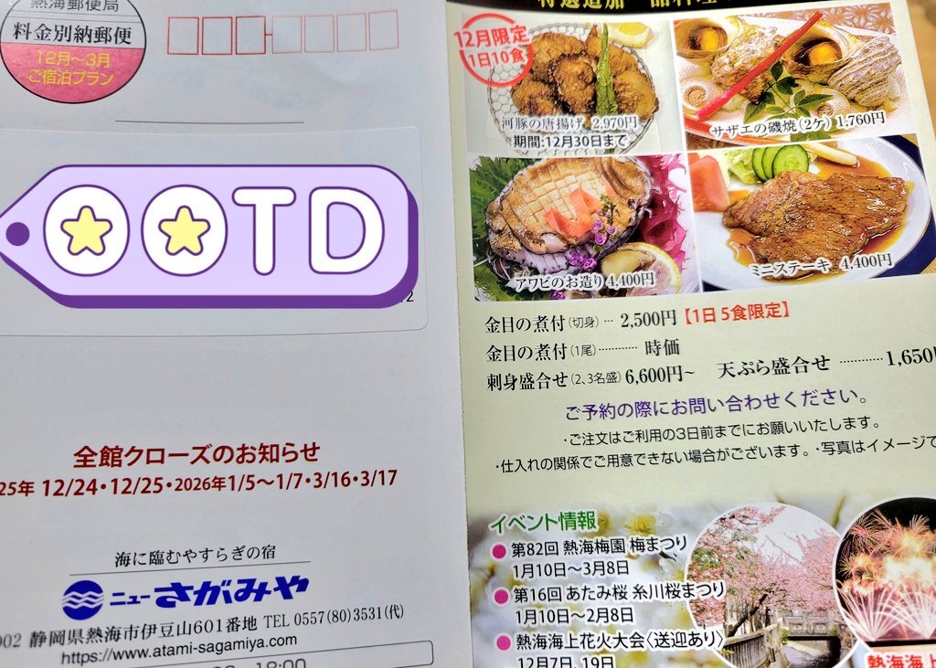 大塚商会コラボ CP開催中🎁 全室オーシャンビュー 🌊 「ホテルニューさがみや」 日本三大古泉のひとつの「走り湯」♨ 温泉 × 海景色 で心と体をリセット 海と山の恵みを織り交ぜたご褒美ディナー” 🍶✨ ホテルInstagramも要チェック📸 instagram.com/sagamiya_offic… #熱海 #キャンペーン 詳細は👇 x.com/iLab_otsuka/st…