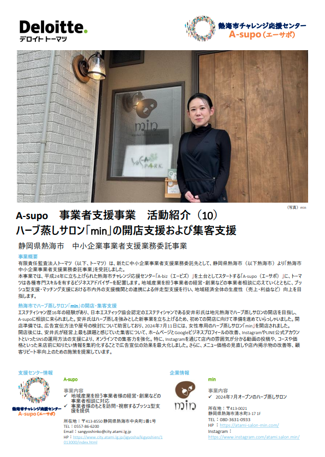 【開業・集客支援事例のご紹介】 本日は、ハーブ蒸しサロンmin様をご紹介いたします🍃 min様は、女性に寄り添い、身体を芯から温めて美しく、元気になる全身ハーブ蒸しを提供されています。 美と健康を両立できるようなアドバイスや施術もmin様の魅力です✨ 詳しくは、画像をご覧ください。 #熱海 pic.x.com/q2Ige1o1nz