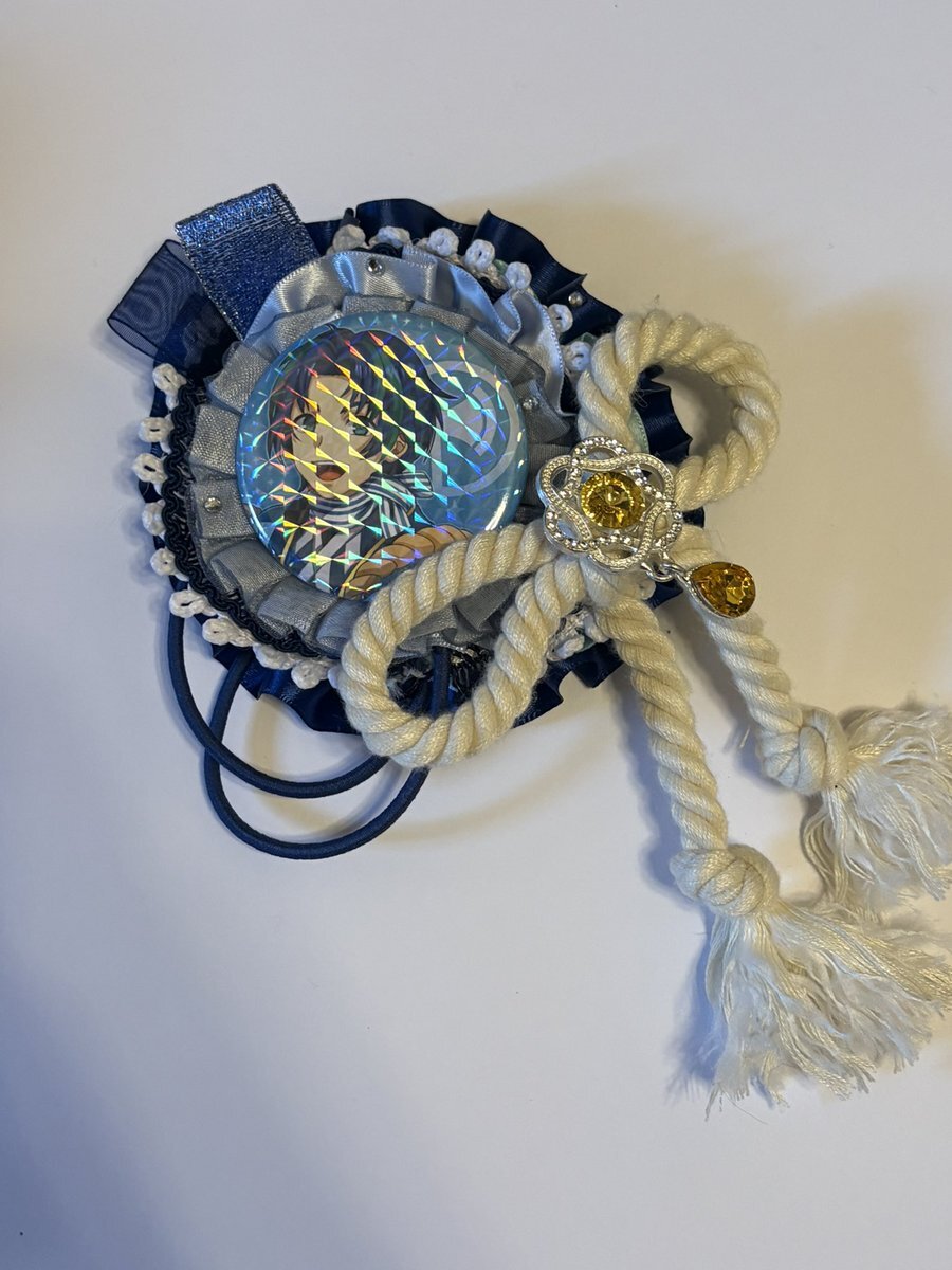 塩屋埼灯台 ロゼット しおやんがつけてる綱をつけて 青い紐はしおやんの履物の紐をつけて 全て青にせず少し白を入れて作りました! #燈の守り人 #塩屋埼灯台 #あかりび pic.x.com/F4yndC9E60