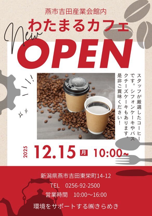 吉田産業会館1Fにカフェ作ってます 本格オープンは12月中旬を予定しています WI-FI有 コーヒ有 居場所スペース有 なのでちょっとしたコワーキングスペースとしてもお使いください♡ #燕 #コワーキングスペース #吉田 pic.x.com/HIRJGWjKeP