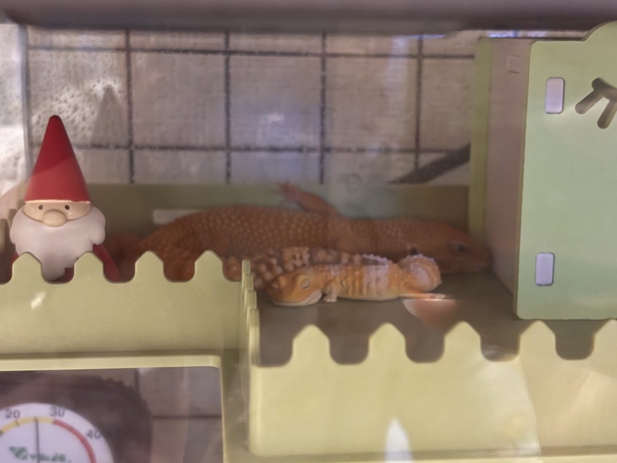 ここで寝てるのは初めてなんだけどぉ👀✨ 一緒に寝てるじゃ〜ん #レオパ #ヒョウモントカゲモドキ #爬虫類好きと繋がりたい pic.x.com/nvIoUAEdPT