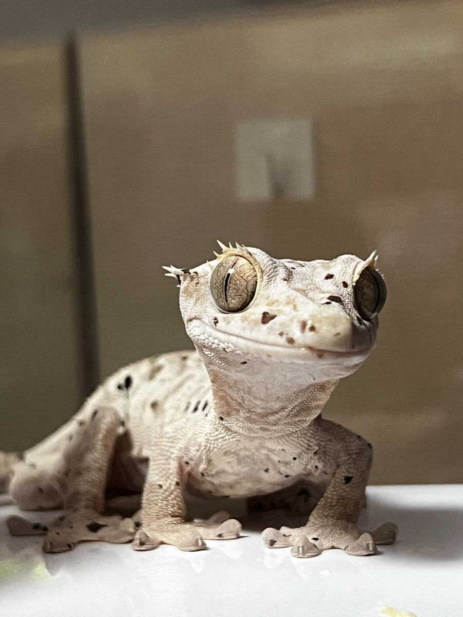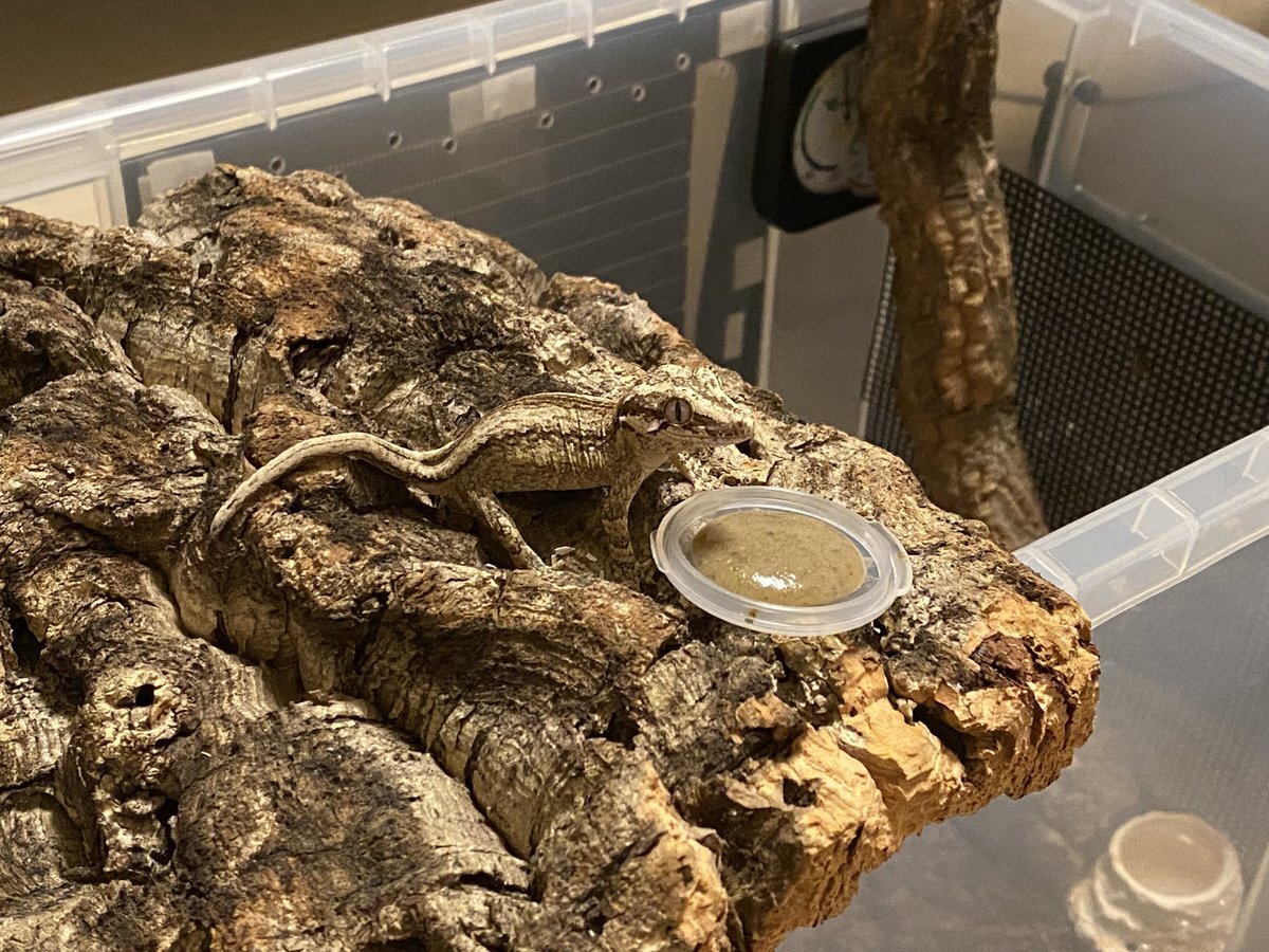 コイツを見てくれ、最高だ。 時々ジャンプして腕に飛んできたときの感触を楽しんでる。ハンドリングはまだ我慢。 そもそもまだ小さいから、容器ももう少し小さい方が良かったりするのかな? ちなみに今幅40×奥行30×高さ32センチ。 #爬虫類好きと繋がりたい #ガーゴイルゲッコー pic.x.com/9kNaMVZkkW