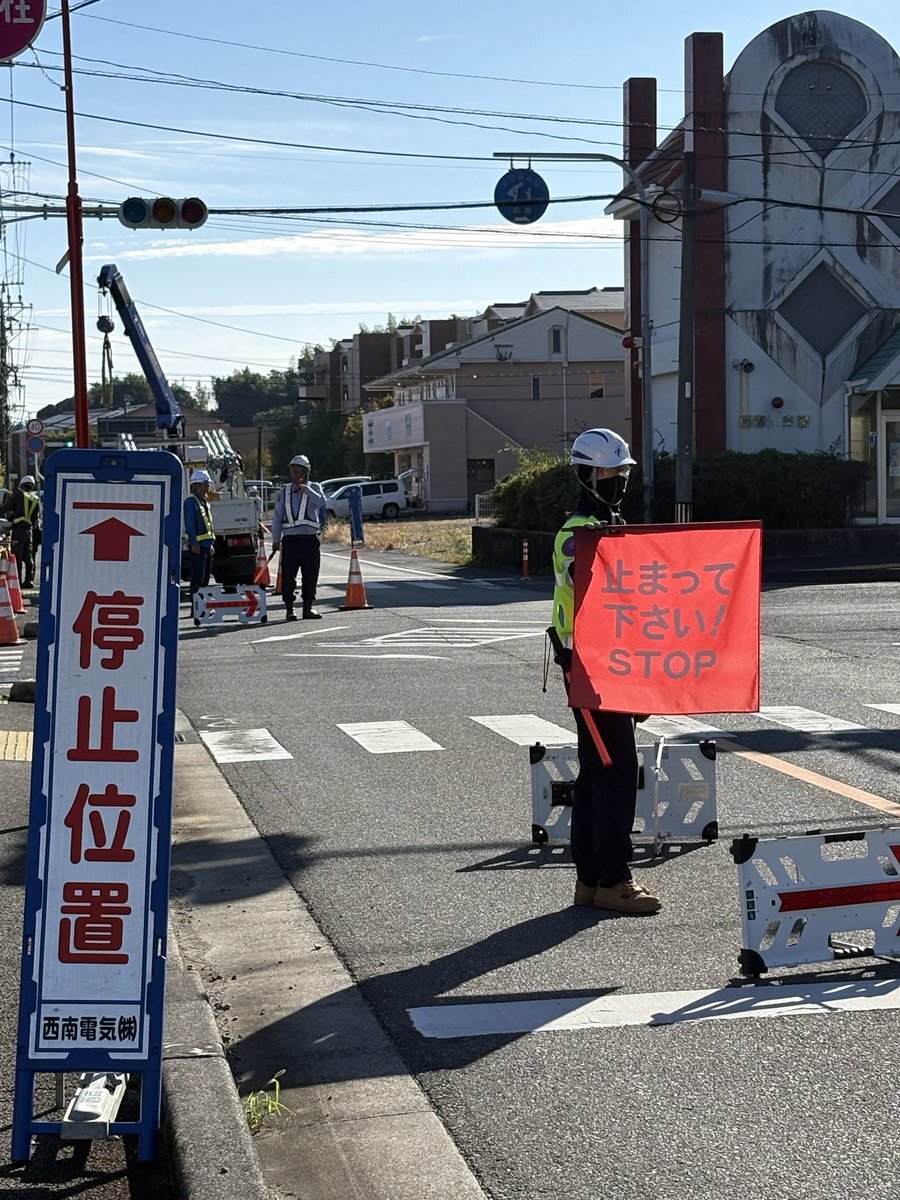 本日の延岡市は快晴☀️です! 新人隊員さんとベテラン隊員さんが連携して、信号機滅灯🚥でもスムーズに片側交互通行を行っています😁🚩 #片側交互通行  #安全第一  #警備員募集 #FCガード pic.x.com/Dco5rg5oYQ
