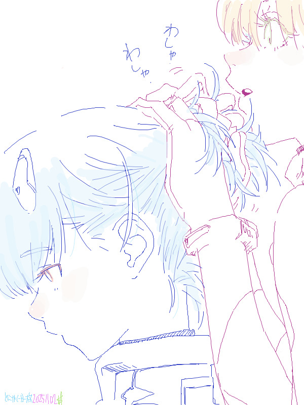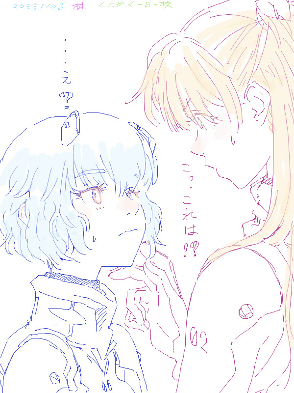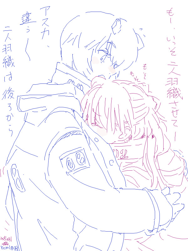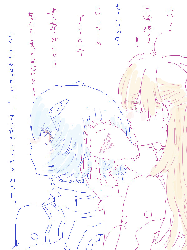 #シンプルドロー #版権 →「は~い、耳出して、みみ」 ←「アスカ、寒い」 →「流行ってんだから、我慢しなさい」 ←「寒い」 sketch.pixiv.net/items/50215013… pic.x.com/rZK049F0uy