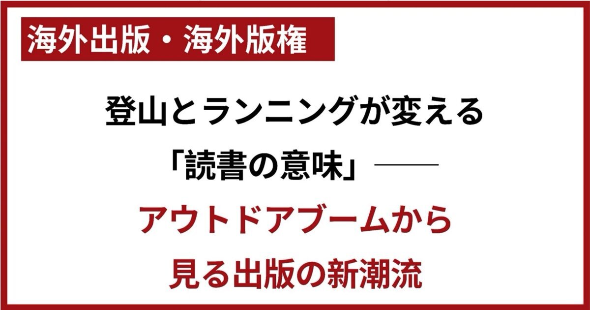 登山とランニングが変える「読書の意味」──アウトドアブームから見る出版の新潮流 ノートで纏めました↓↓ note.com/sabrina1212/n/… #出版 #読書 #本好き #海外版権 #版権 #海外進出 #出版社 pic.x.com/6fupnR1bMm