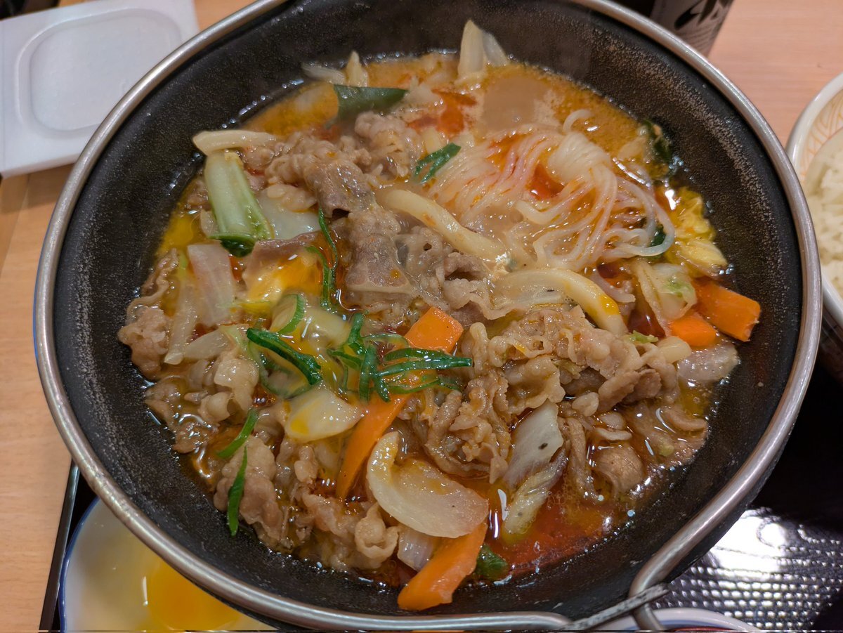 すき家で #牛胡麻麻辣湯鍋定食 食べて来たよ 最後まで熱々過ぎて死ぬぅ! 麻辣湯のあの八角なのか花椒なのか独特の味が苦手なんだけど味もマイルドで美味しかったよ お肉は牛丼のお肉そのままなのでよーく出汁を染み込ませて食べるのをオススメします pic.x.com/S0l7NErTnA