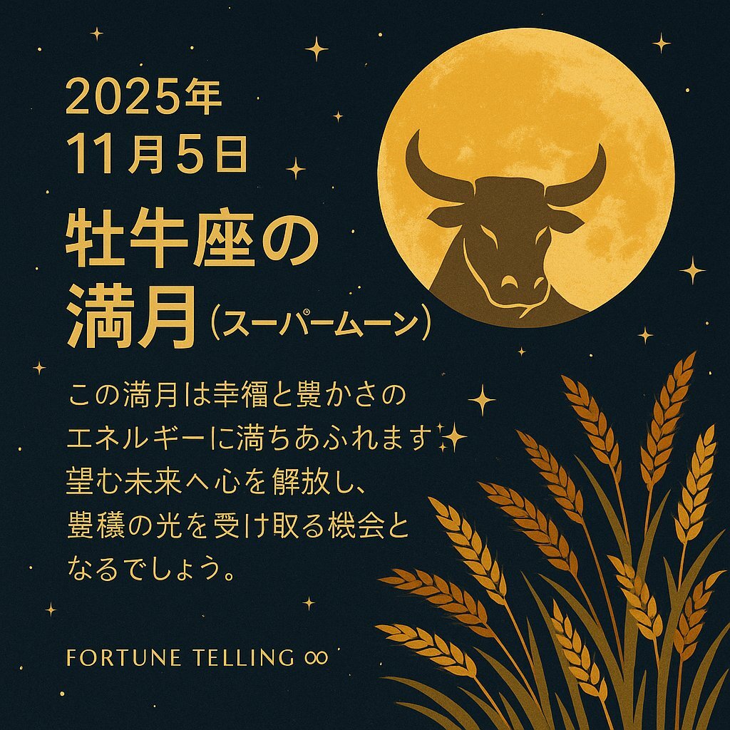 #2025年11月5日、夜空には #牡牛座の満月 が満ちあふれます。 しかもこの満月は、1年で最も大きく輝く #スーパームーン。 #牡牛座 は、 💰 豊かさ 🌿 安心感 💎 五感の喜び 🏡 現実的な安定 を司る星座。 この日は、宇宙が「豊かさと幸せの実感」を与えてくれる特別な夜です✨ pic.x.com/i9iPzyoM3S