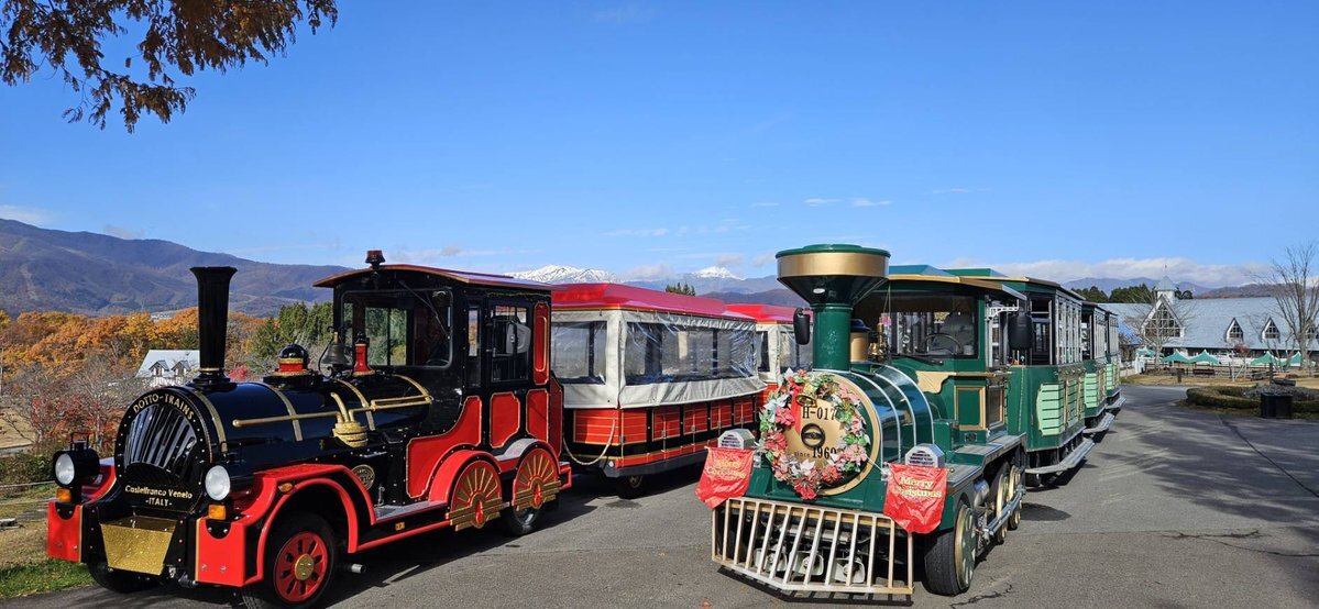 【一足早いクリスマス】 ロードトレイン「マックス君」が、クリスマス装飾され園内を周遊します✨🎄✨ 2代目「ドット君」と並んでいると、まるでドット君がサンタさん🎅&マックス君がクリスマスツリー🎄のようですね😆 #牧歌の里 pic.x.com/TuxkGemG3w