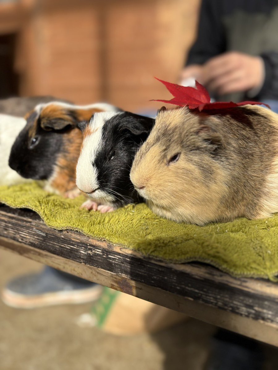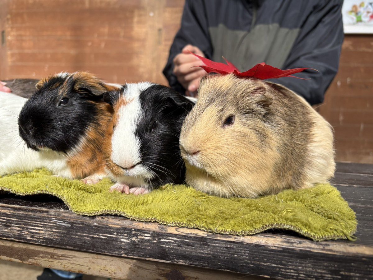 毎日イベント【あにまるたっち】 紅葉が似合うプリティーころっけちゃんとマロニーぱすた親子🐹 みんな日向で眠たそうでした💤 今日も楽しい一日でした♪ #牧歌の里 #モルモット pic.x.com/aDgbilEel0