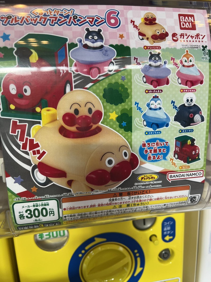 本日、牧歌の里様内に設置中のガチャに、バンダイさんの「くるっとターン!プルバックアンパンマン6」、「Polly Pocket ミニチュアチャーム2」を投入しました。 #牧歌の里 pic.x.com/oDzaMdk2wd