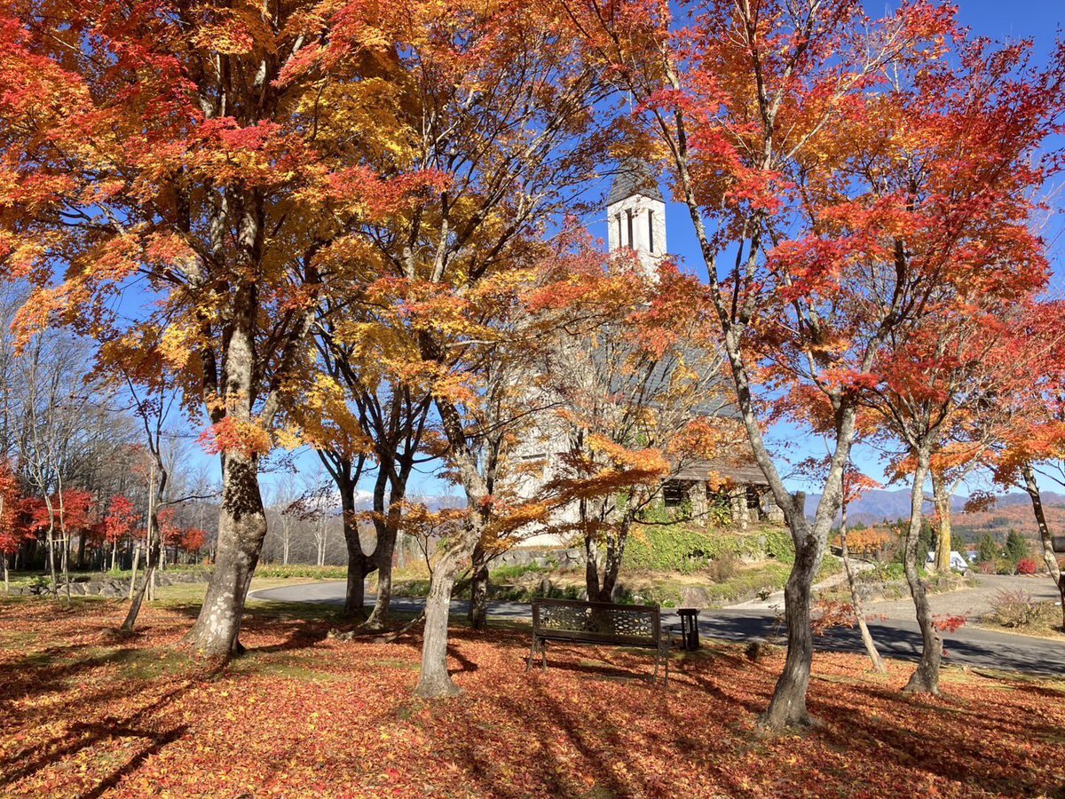 【一足早いクリスマス】 《花の教会》のクリスマスツリー🎄⛪️ 《ロードトレインのりば》のメタセコイヤの紅葉は今が見頃🍁 紅葉&クリスマスを一緒に味わえる季節です🎄🎅🍁 #牧歌の里 pic.x.com/qXnkuCDECH