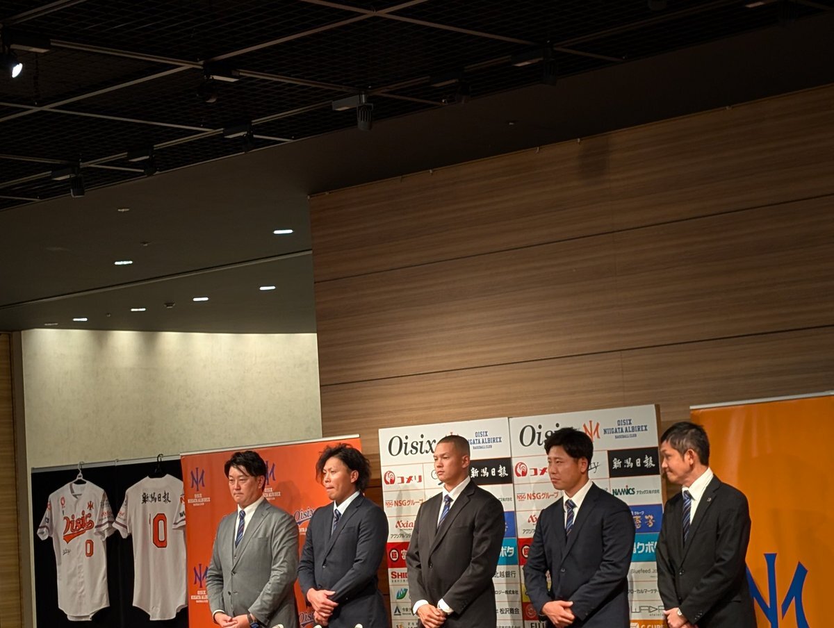 ドラフトで指名を受けたオイシックス新潟アルビレックスBCの3選手❗️ 牧野選手からはサインをもらうことは出来ませんでしたが、能登選手と知念選手からはもらってました✨ NPBに行っても活躍して欲しい😆 応援しています🏟️ #オイシックス新潟アルビレックスBC #能登嵩都 #知念大成 #牧野憲伸 pic.x.com/ppJayvp5Oi
