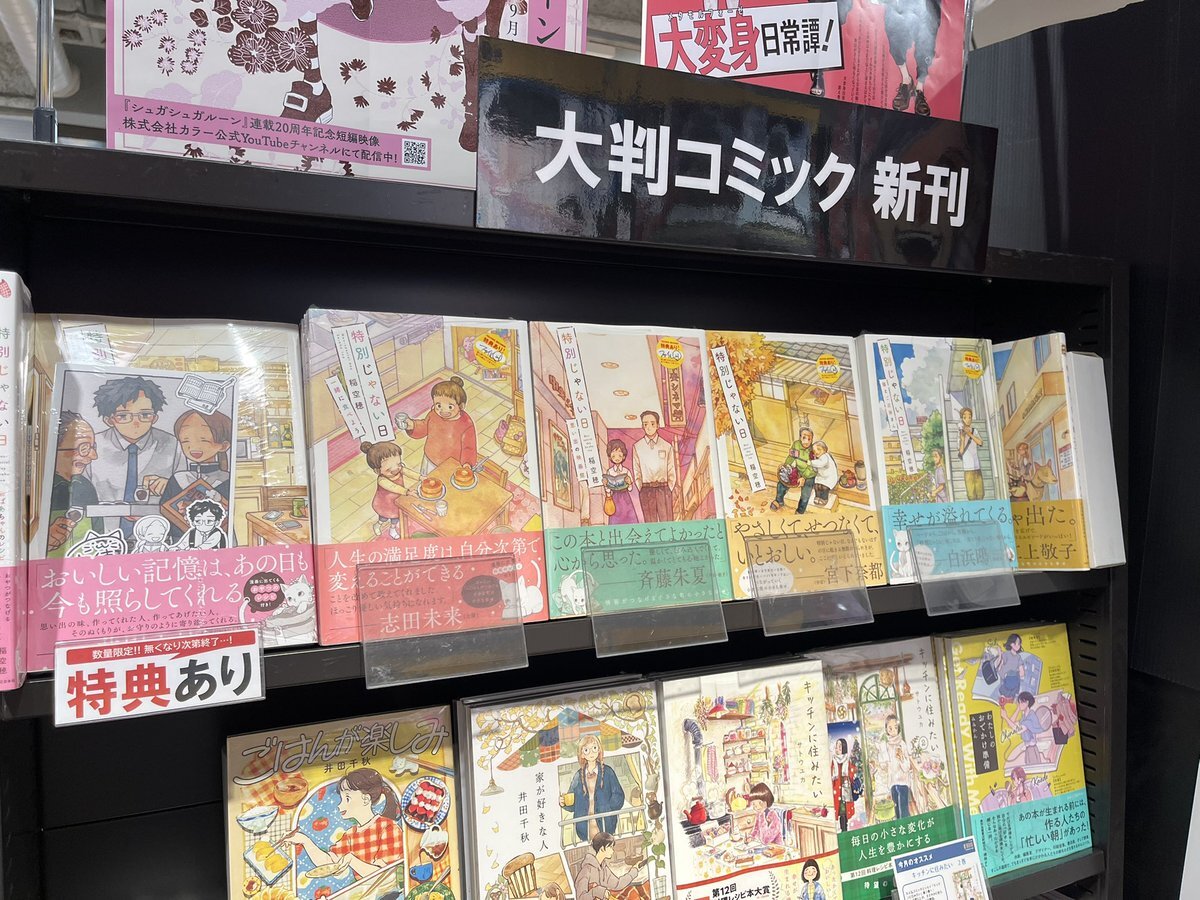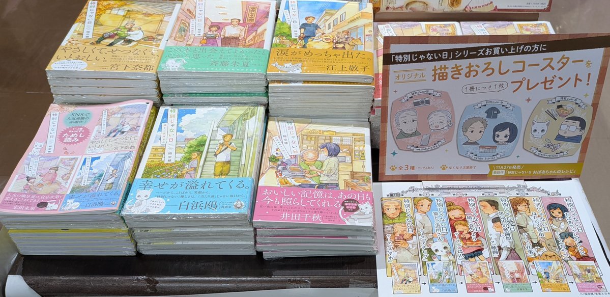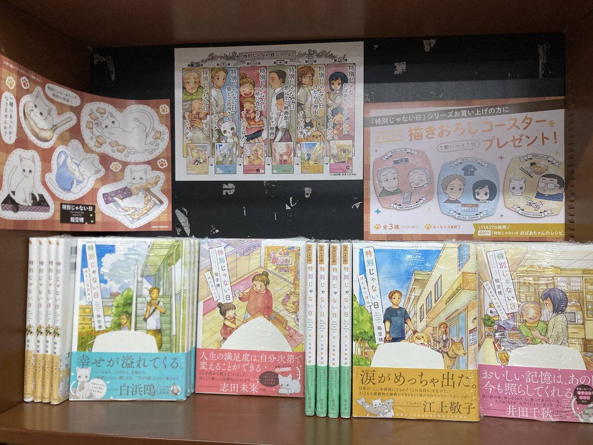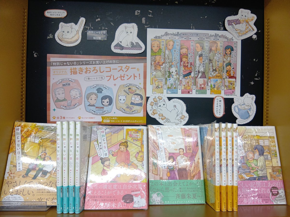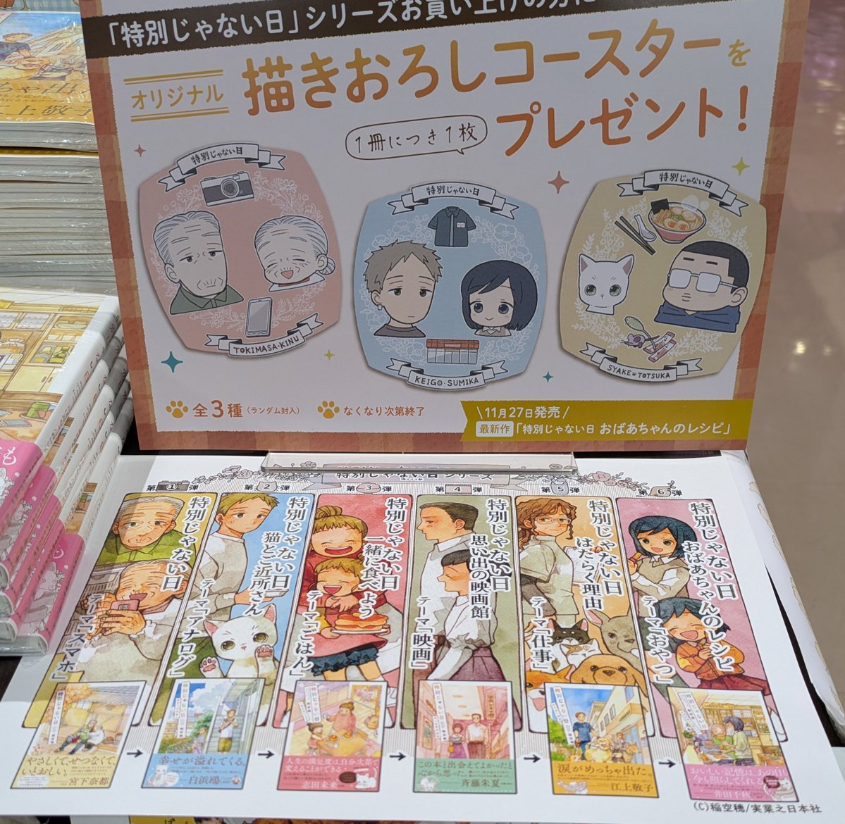 📚4階コミックコーナー 本日「特別じゃない日 おばあちゃんのレシピ」が入荷致しました 新刊には店舗限定特典のポストカードが封入しております。既刊にはコースターが封入済みです それぞれなくなり次第終了となりますのでご了承くださいませ #実業之日本社 #特別じゃない日ディスプレイコンテスト pic.x.com/ZDnWU5vj5z