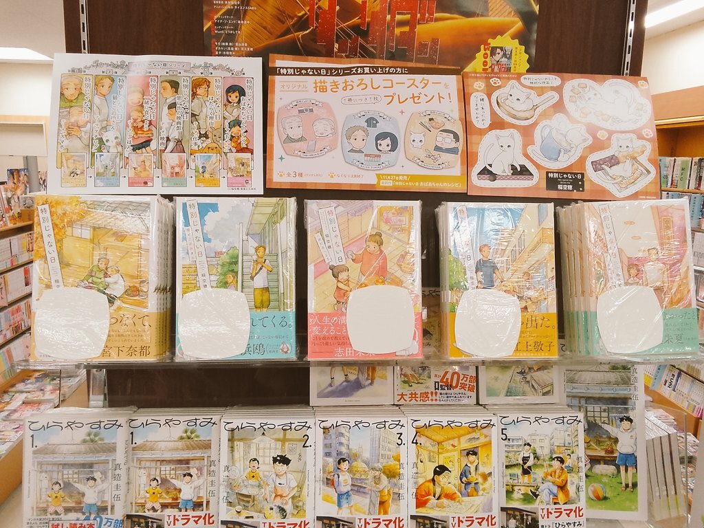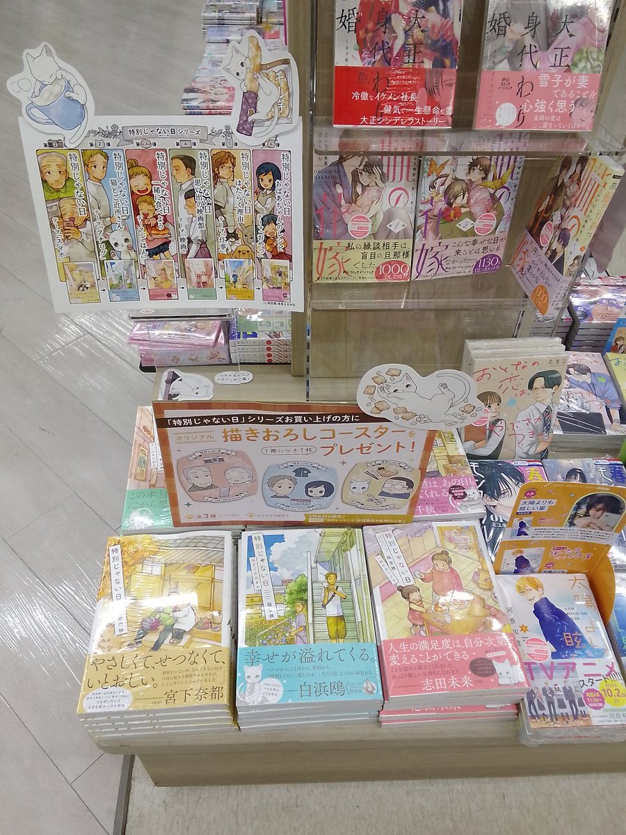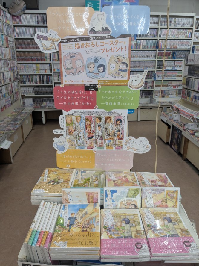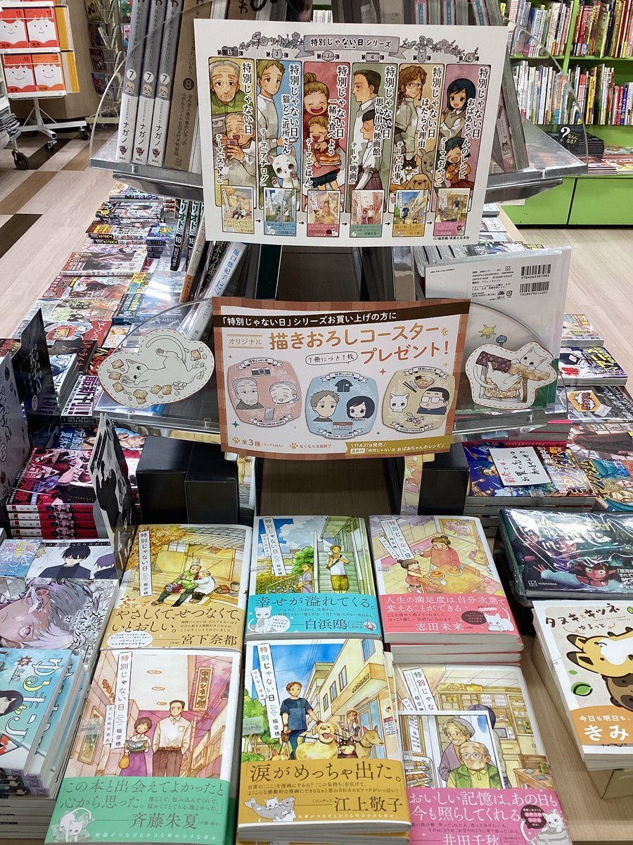 【新刊情報】 #特別じゃない日6巻 入荷しました♪ 既刊のフェアも行っております。特典のコースターがランダムで封入されています! #特別じゃない日ディスプレイコンテスト pic.x.com/seK1BcHKCn