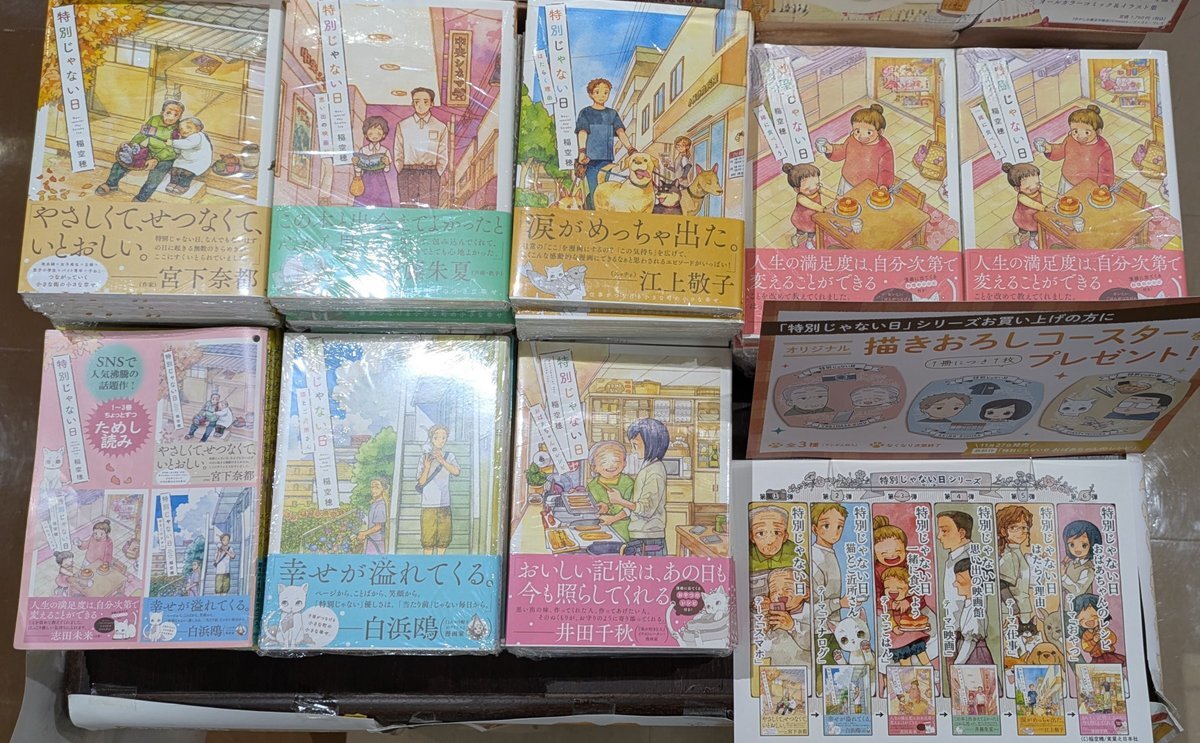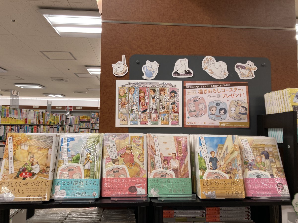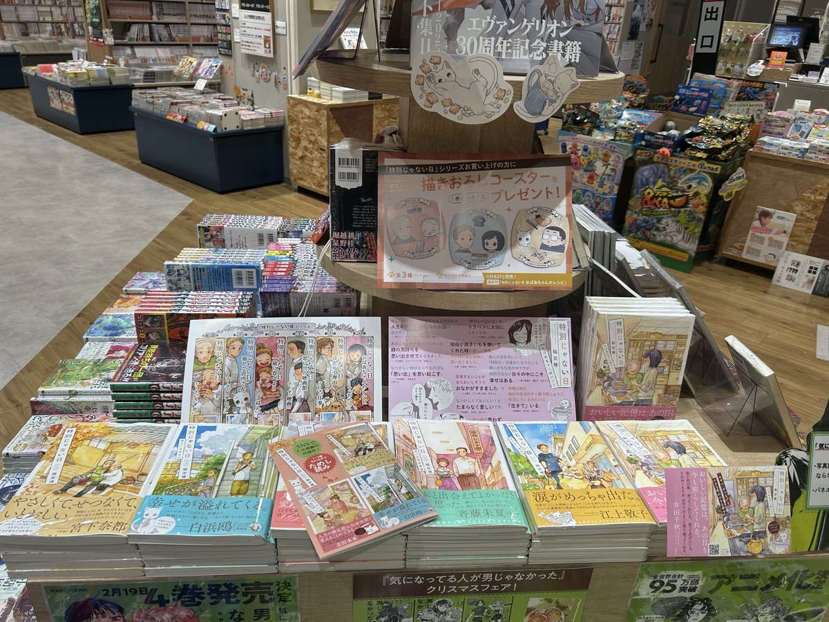 【新刊情報】 #特別じゃない日6巻 入荷しました♪ 既刊のフェアも行っております。特典のコースターがランダムで封入されています! #特別じゃない日ディスプレイコンテスト pic.x.com/seK1BcHKCn