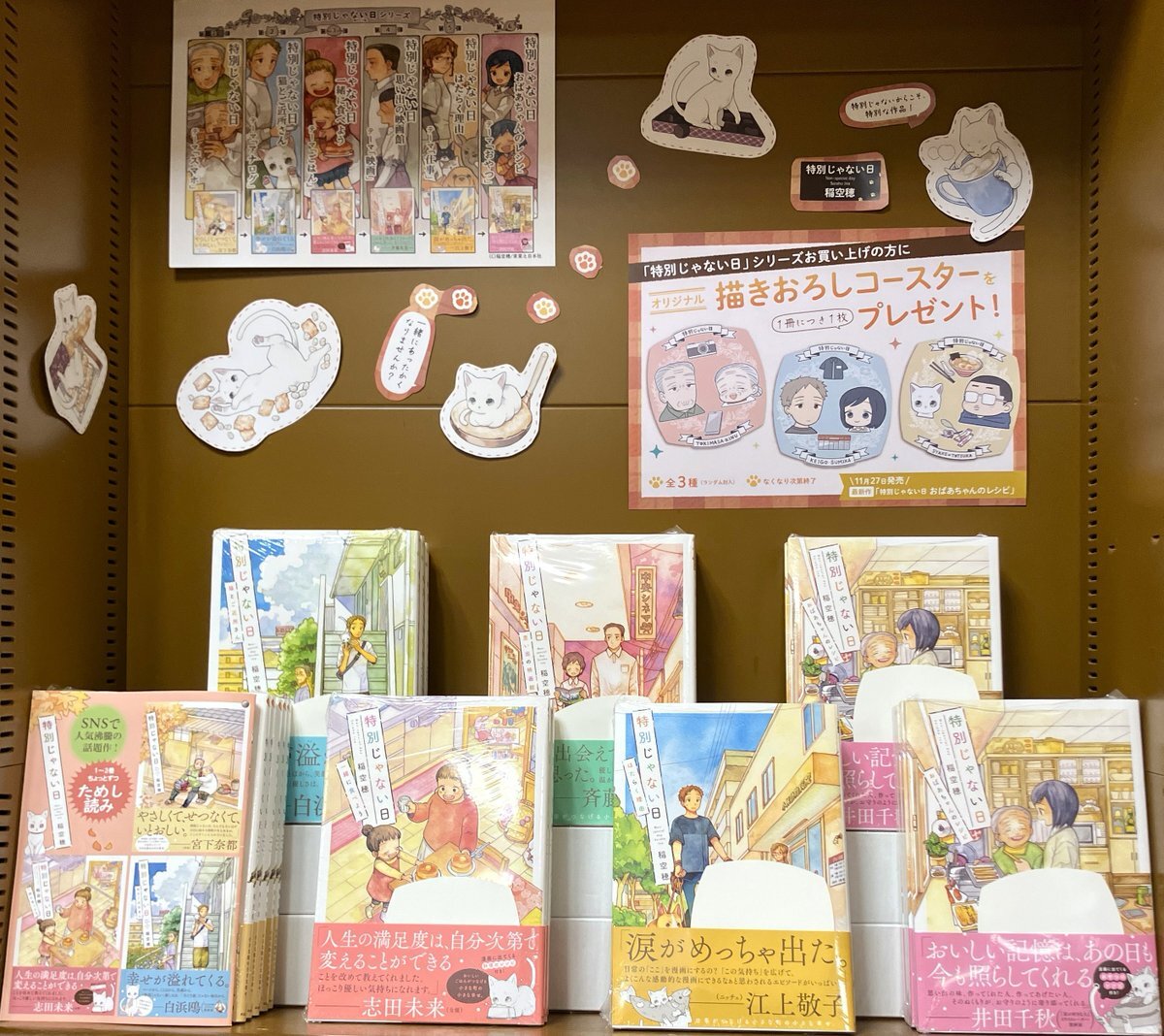 【🐱フェア開催中✨️】 『 #特別じゃない日 』シリーズ 1冊お買い上げにつき描き下ろしコースターを封入しております‼️ あたたかくて優しいお話の短編連作です。どのかんから読んでも楽しめますよ🍀*゜ #特別じゃない日ディスプレイコンテスト #実業之日本社 #くまざわ書店東海荒尾店 pic.x.com/0tGyPAA8UN
