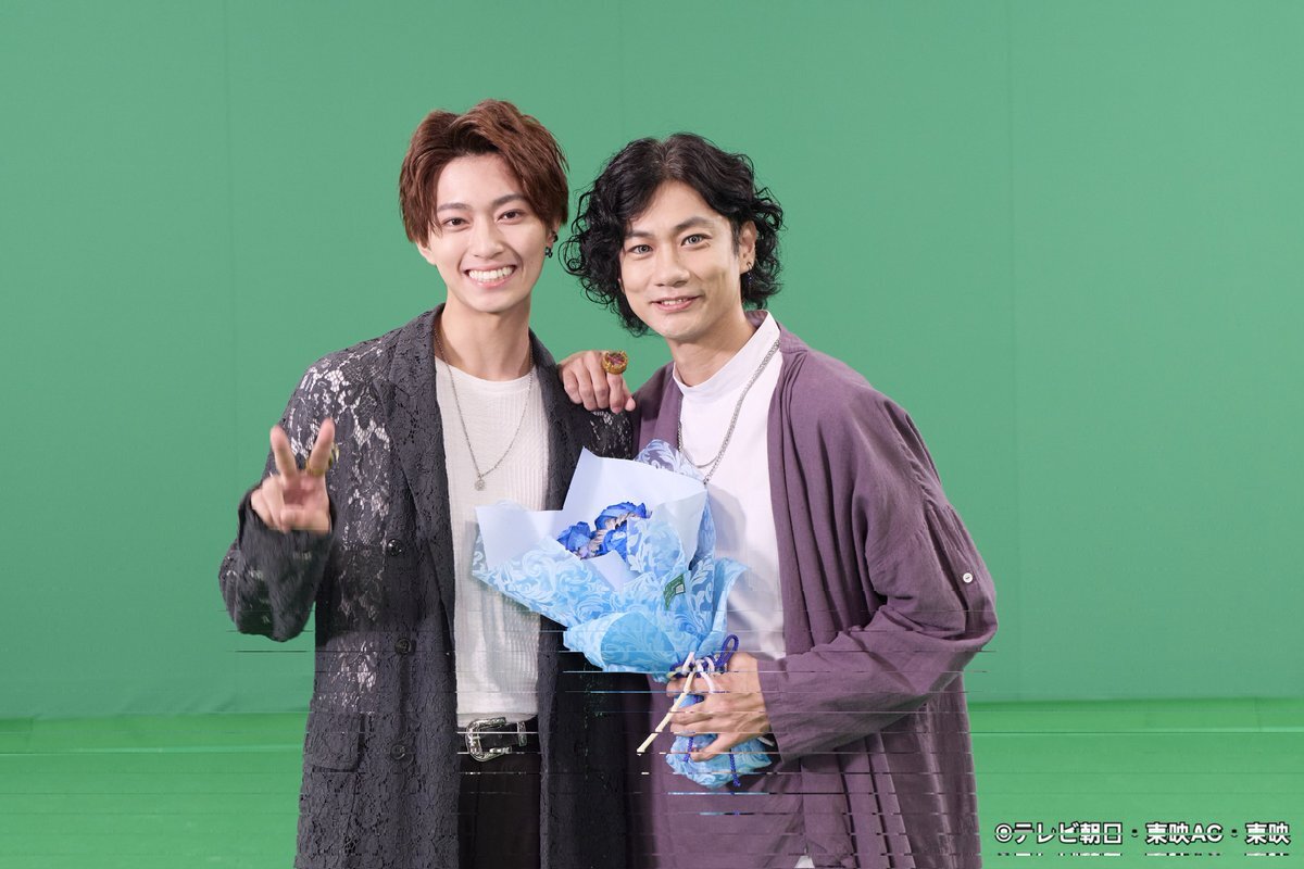 クランクアップのお花は、 青と灰色の花を包んだ花束でした。 次、玲さんがステージを見にくるときは、スーパーアイドルに返り咲いた後だね。 陸王!🪻 #ゴジュウジャー #玲さん #百夜陸王 #34話 #馬場さんありがとうございました 🦁 #リクオニスト x.com/Gozyu_toei/sta…