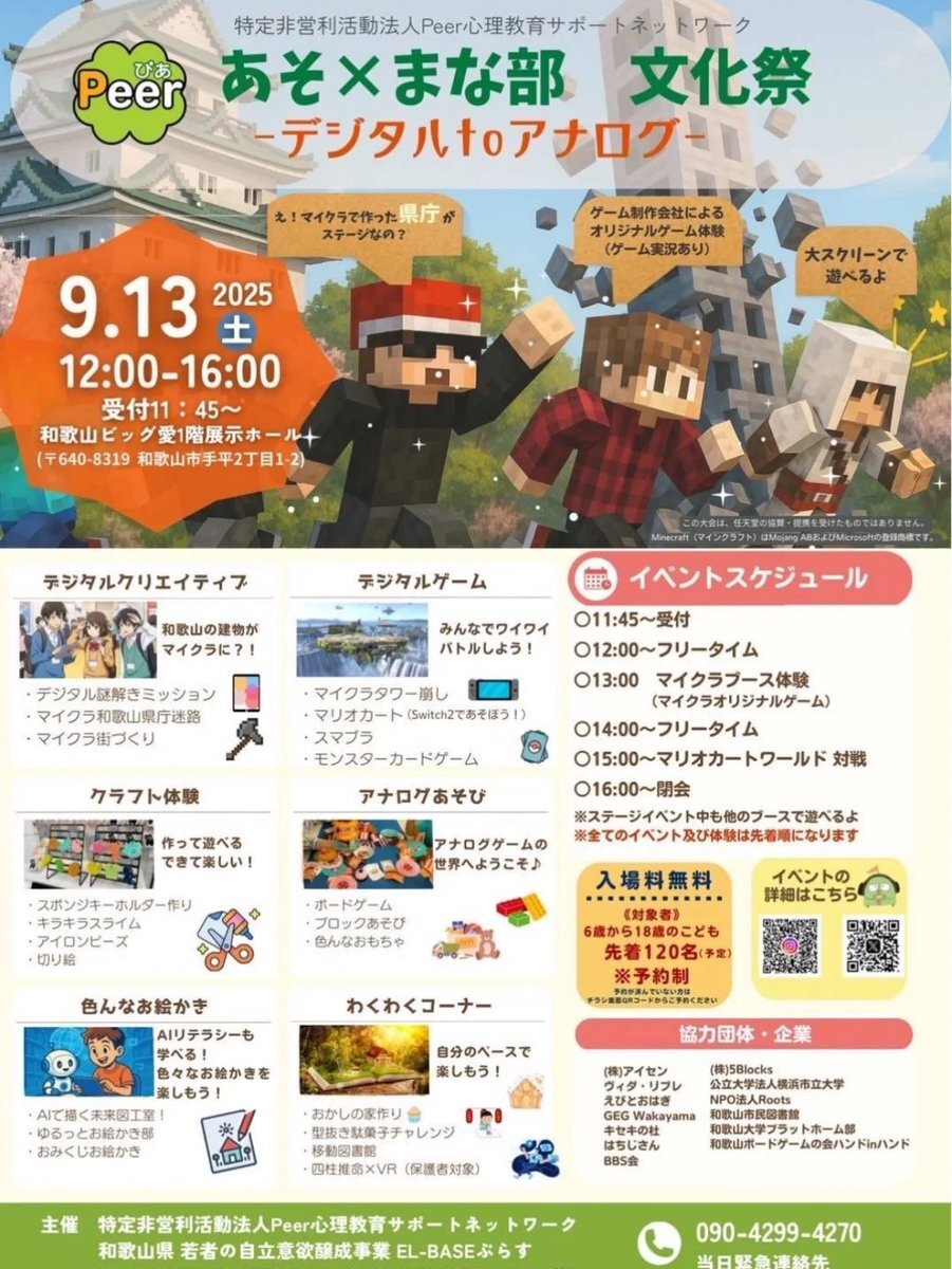 今週、9月13日(土曜日) 和歌山ビック愛で開催 あそ×まな部 文化祭-デジタルtoアナログ-にハンドinハンドのメンバーとして参加します。 その為、お店はお休みさせて頂きます。 その代わり、イベントに参加して頂けたら幸いです。 #和歌山県 #特定非営利活動法人Peer心理教育サポートネットワーク pic.x.com/ptUVxjoxiH