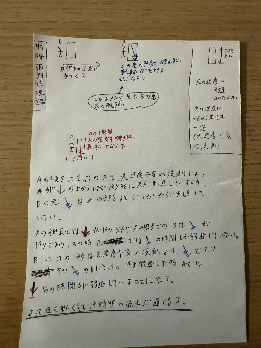 #特殊相対性理論 うまく説明できなくて気持ち悪かったから思考再実験してみてまとめてみたよ pic.x.com/2TsEQv0y36
