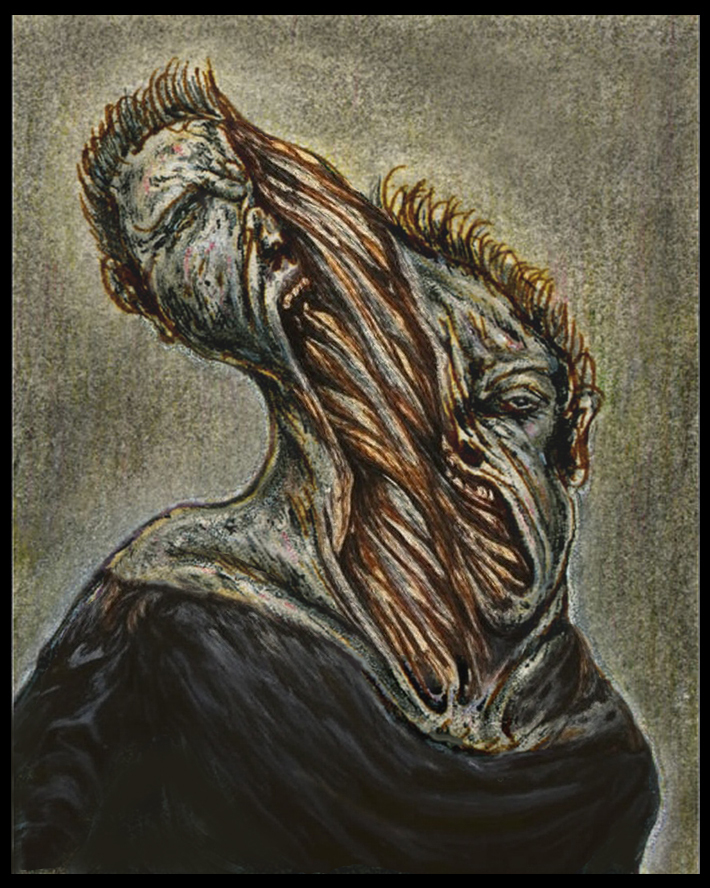 90年代半ばにラバーマスクで実現しようと思って描いたデザイン画。いろいろやって粘土原型の段階で頓挫しました(笑) よくあることですねー。 #クリーチャー #怪物 #monster #妖怪 #ホラー #specialmakeupeffects #specialmakeup #makeupfx #特殊メイク #特殊造形 pic.x.com/D6UyPrx1Xi