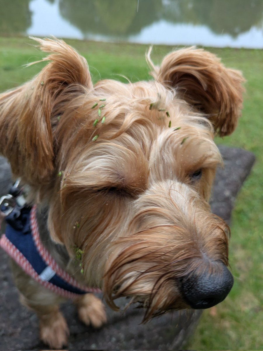 お前…風を感じてる…のか? 小雨の中のあさんぽ〜 とぼけた顔しとるケド お土産いっぱい顔に付けてきた😅 雨で湿って取りづらいのよ… #犬の散歩 #ヨーキー #ヨークシャーテリア #犬のいる生活 pic.x.com/22DF5j1Lfx