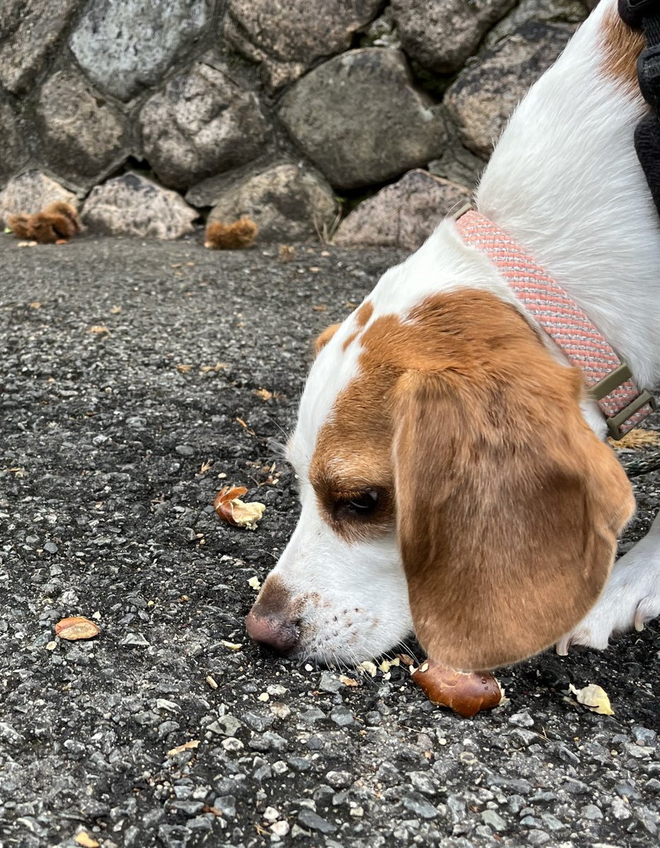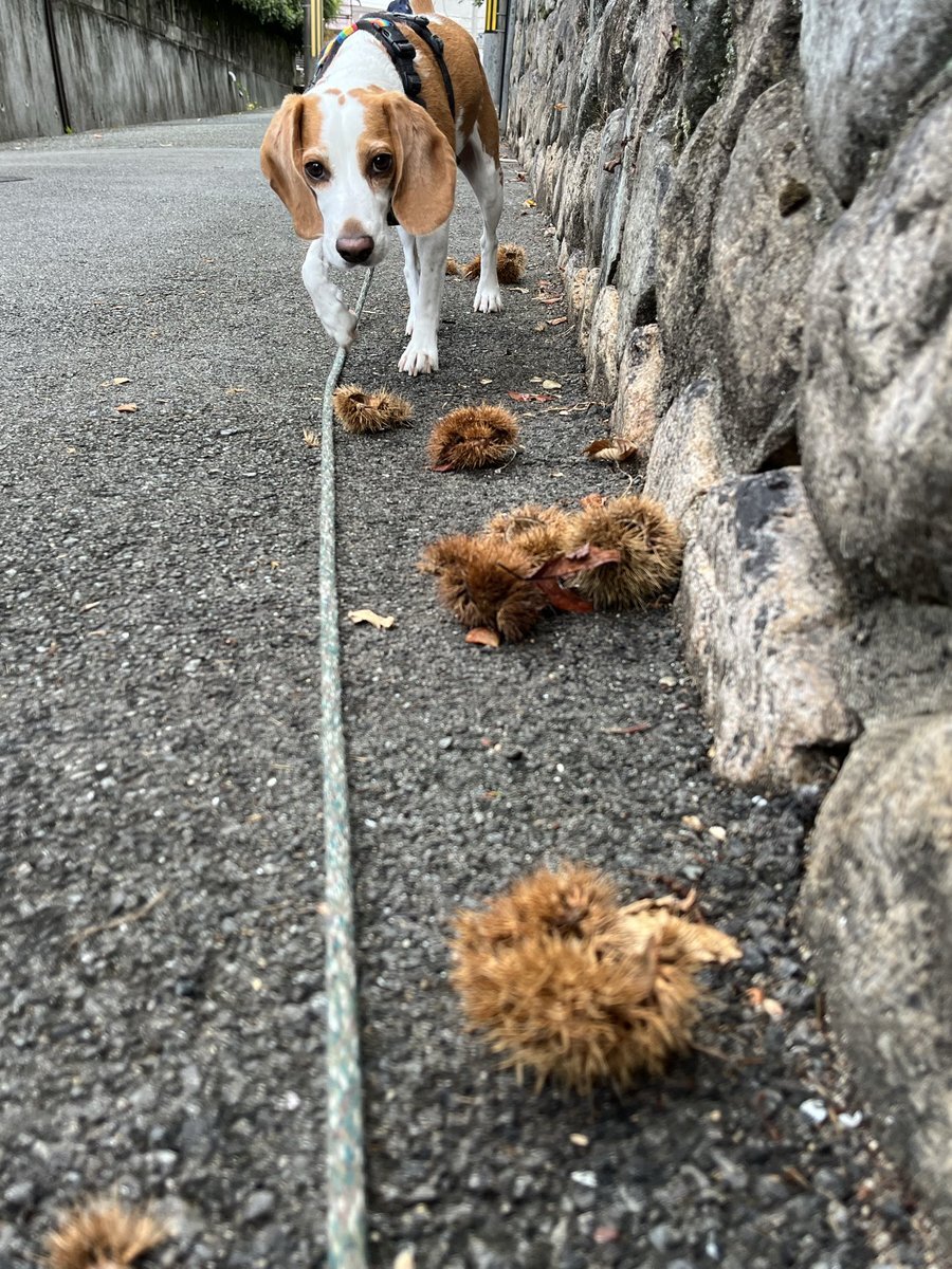 たくさん栗が落ちていた路地。 自転車に轢かれたのか 割れている実がありましたが アリーはそれほど食べませんでした。 どんぐりの方が好きなようです。 🐶茹でてもらえたら… #beagle #犬の散歩 #秋 pic.x.com/zE3rXbPr4S