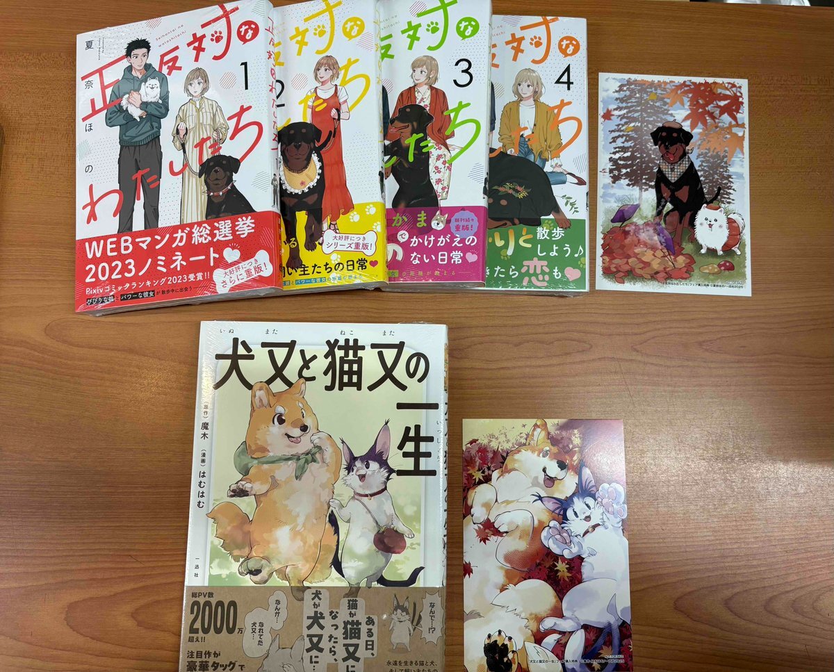 【BOOK情報】 / 一迅社 ワン!だふるフェア本日より開催🐶🐱 『正反対なわたしたち』✖『犬又と猫又の一生』 \ 🐾対象作品を𝟏点購入ごとに 描き下ろしイラストカード𝟏枚お渡し🍁 🐾数に限りがありますのでお早めにどうぞ🫲 #正反対なわたしたち #犬又と猫又の一生 #一迅社 #TSUTAYAあべの橋 pic.x.com/HTYuS1JL0k