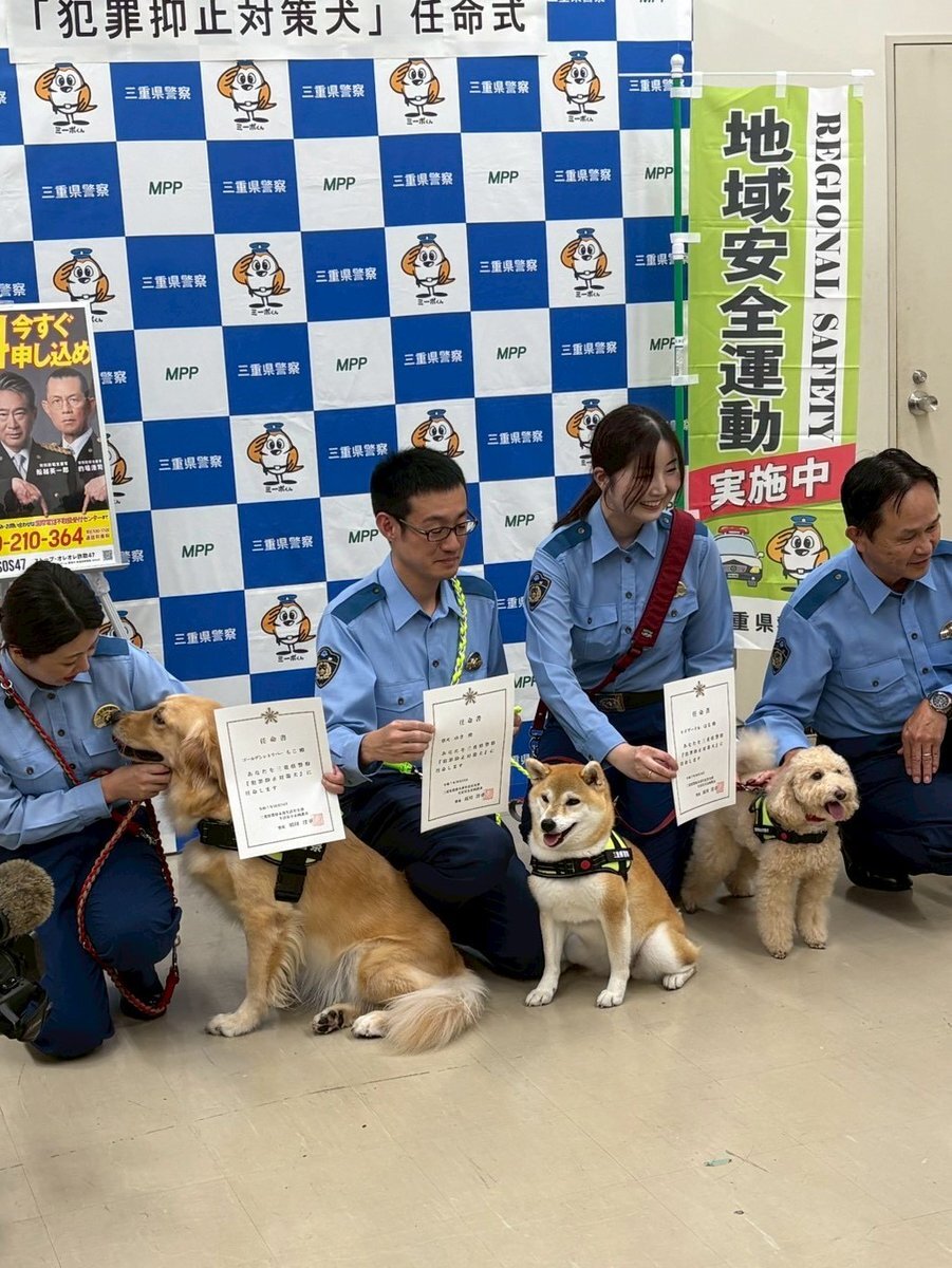 “ワンちゃん”が犯罪防止呼びかけ!? 3頭が「犯罪抑止対策犬」に就任 三重県警|中京テレビNEWS NNN news.ntv.co.jp/n/ctv/category… #中京テレビNEWS #犯罪抑止対策犬