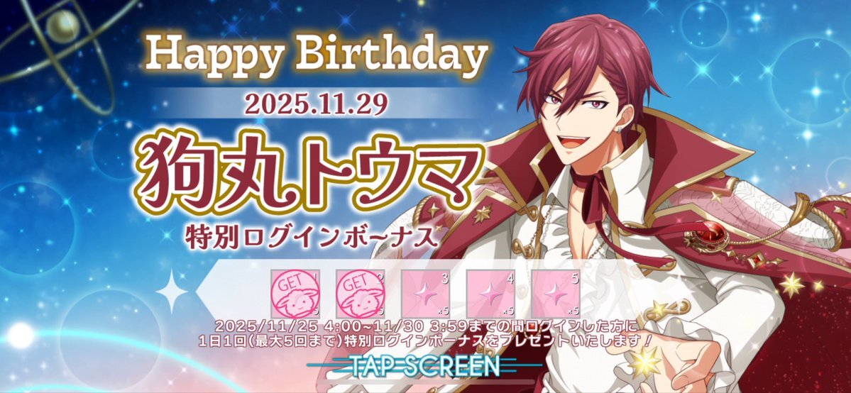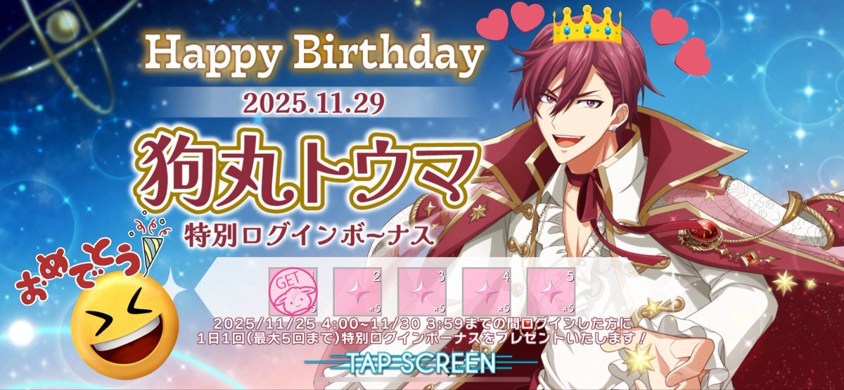 ギリギリすぎてしまいましたが、 2025年11月29日 狗丸トウマさん、お誕生日おめでとうございます🎉 今年もお誕生日をお祝いできて嬉しいです。 #狗丸トウマ #狗丸トウマ生誕祭2025 #狗丸トウマ誕生祭2025 pic.x.com/oZFNpmt9tG