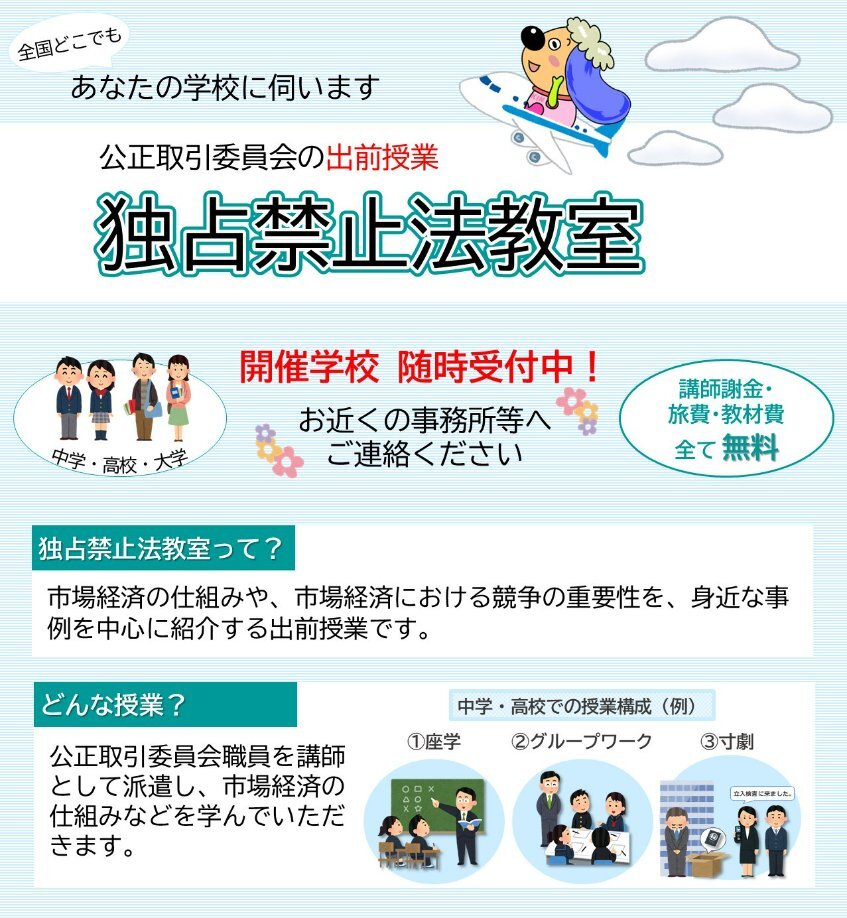 【公正取引課】 学生の皆さんに独占禁止法を理解してもらうための #独占禁止法教室 を昭和薬科大学附属高等学校で開催します!模擬立入検査やゲームを盛り込んだ生徒参加型の教室です。 詳細はこちら⇒ogb.go.jp/-/media/Files/… #沖縄 #公正取引委員会 #独占禁止法 pic.x.com/9lJzHG5VUO