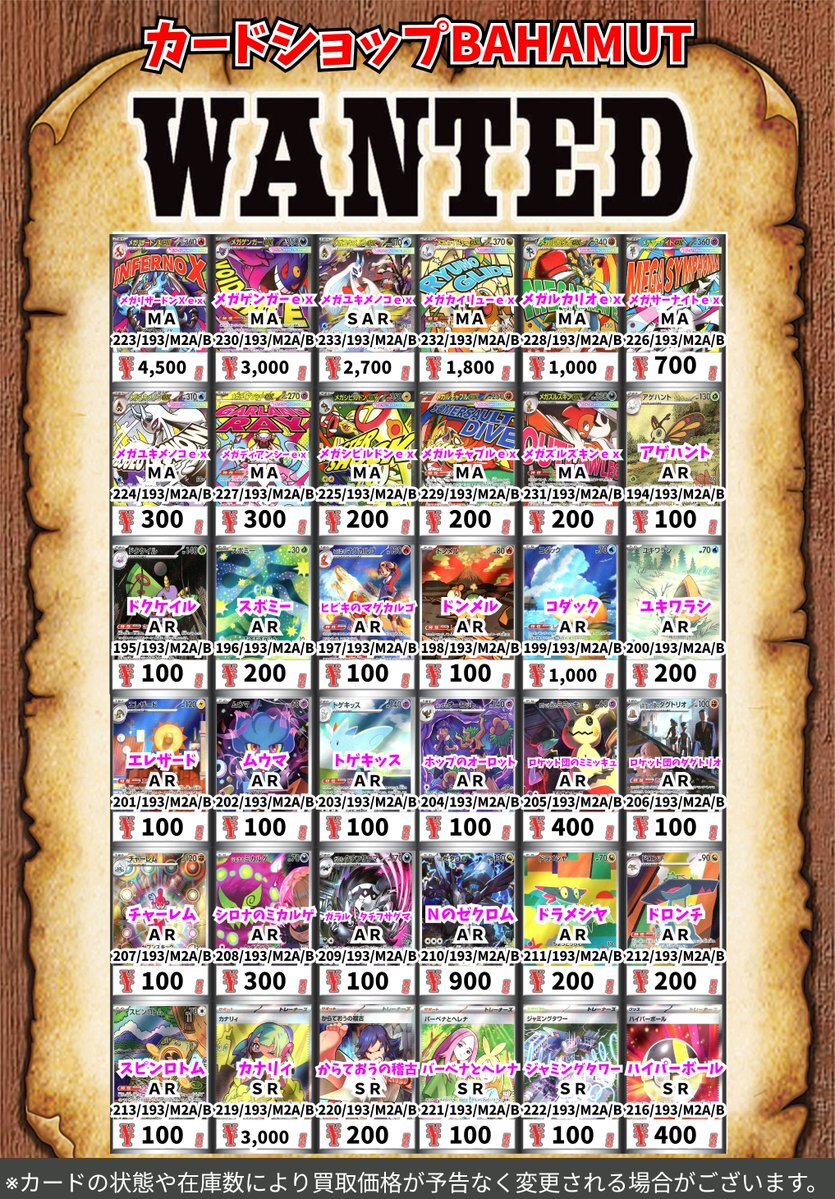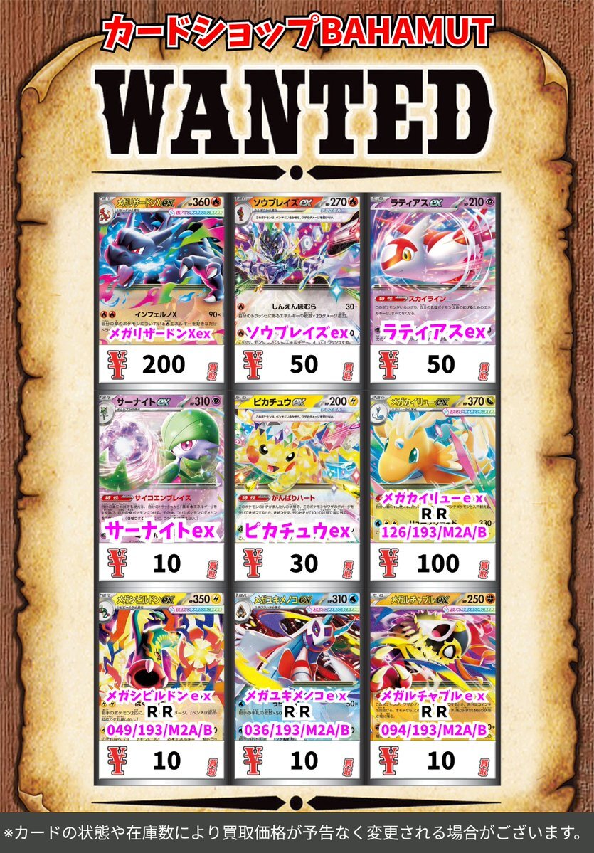 ポケモン買取情報! メガリザードンXex MA 4500 メガゲンガーex MA 3000 メガユキメノコex SAR 2700 メガカイリューex MA 1800 メガルカリオex MA 1000 #ロルカナ #ポケモンカード #mtgjp #ガンダムカードゲーム #バハムート #札幌 #狸小路 #トレカ #買取 #販売 pic.x.com/fNXi3KSsQ4