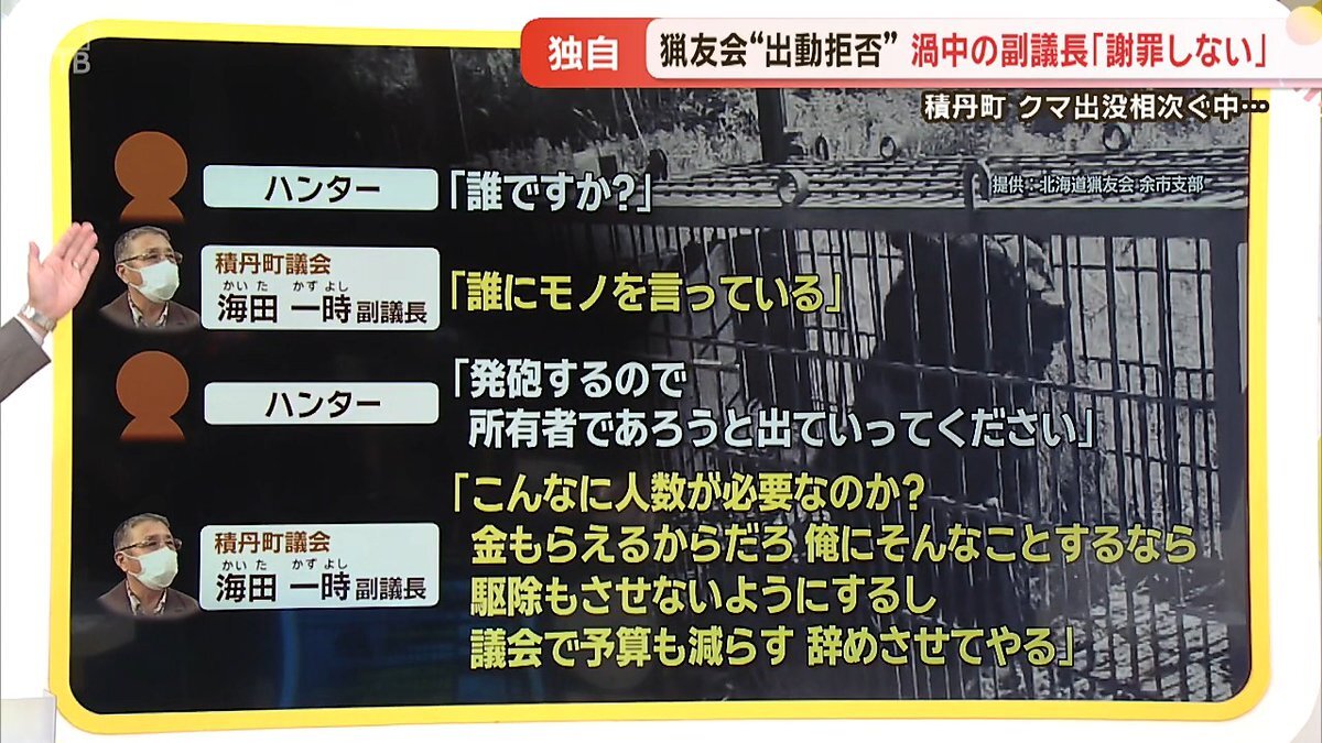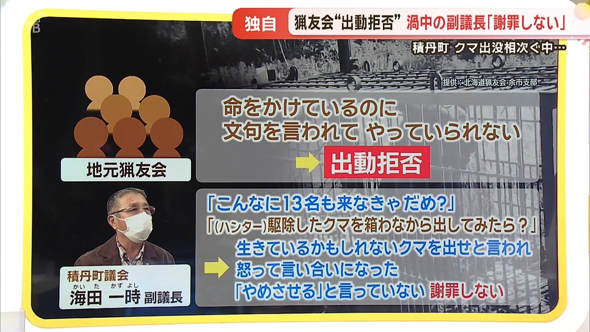 碇シンジくんか? #積丹町 #猟友会出動拒否 #僕は悪くない 【独自】渦中の副議長が激白「僕は悪くない」北海道積丹町の猟友会"出動拒否" クマ出没頻発も問題長期化へ htb.co.jp/news/archives_…