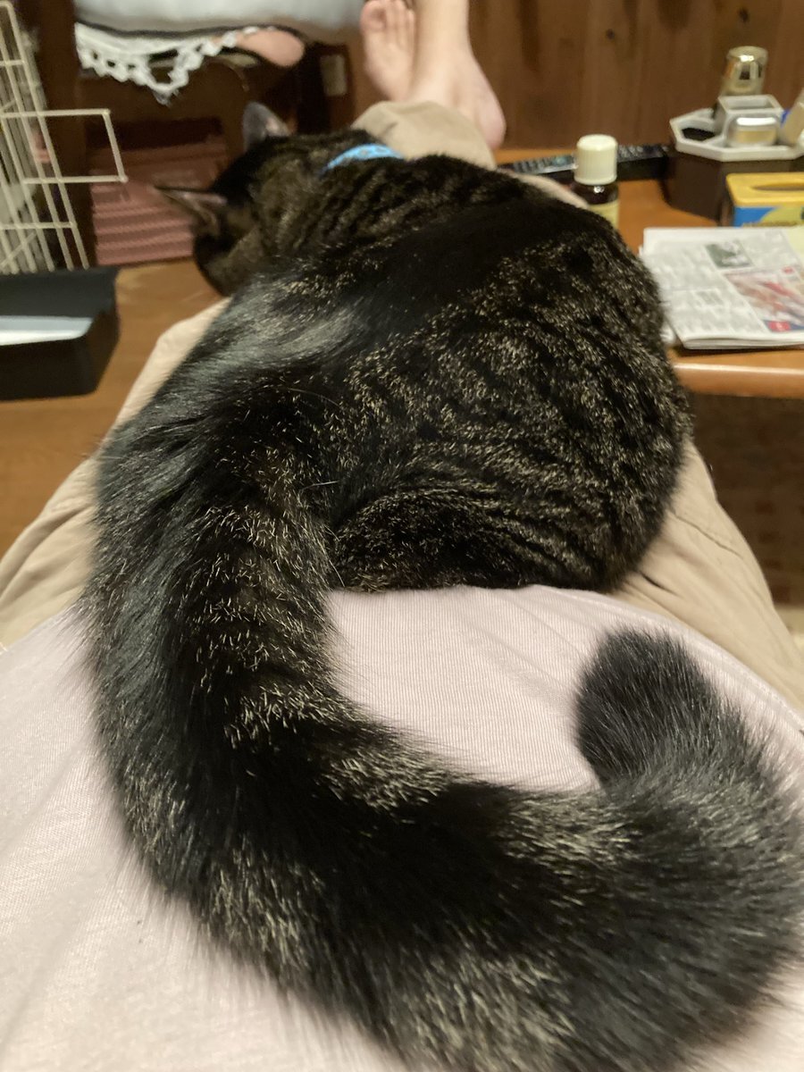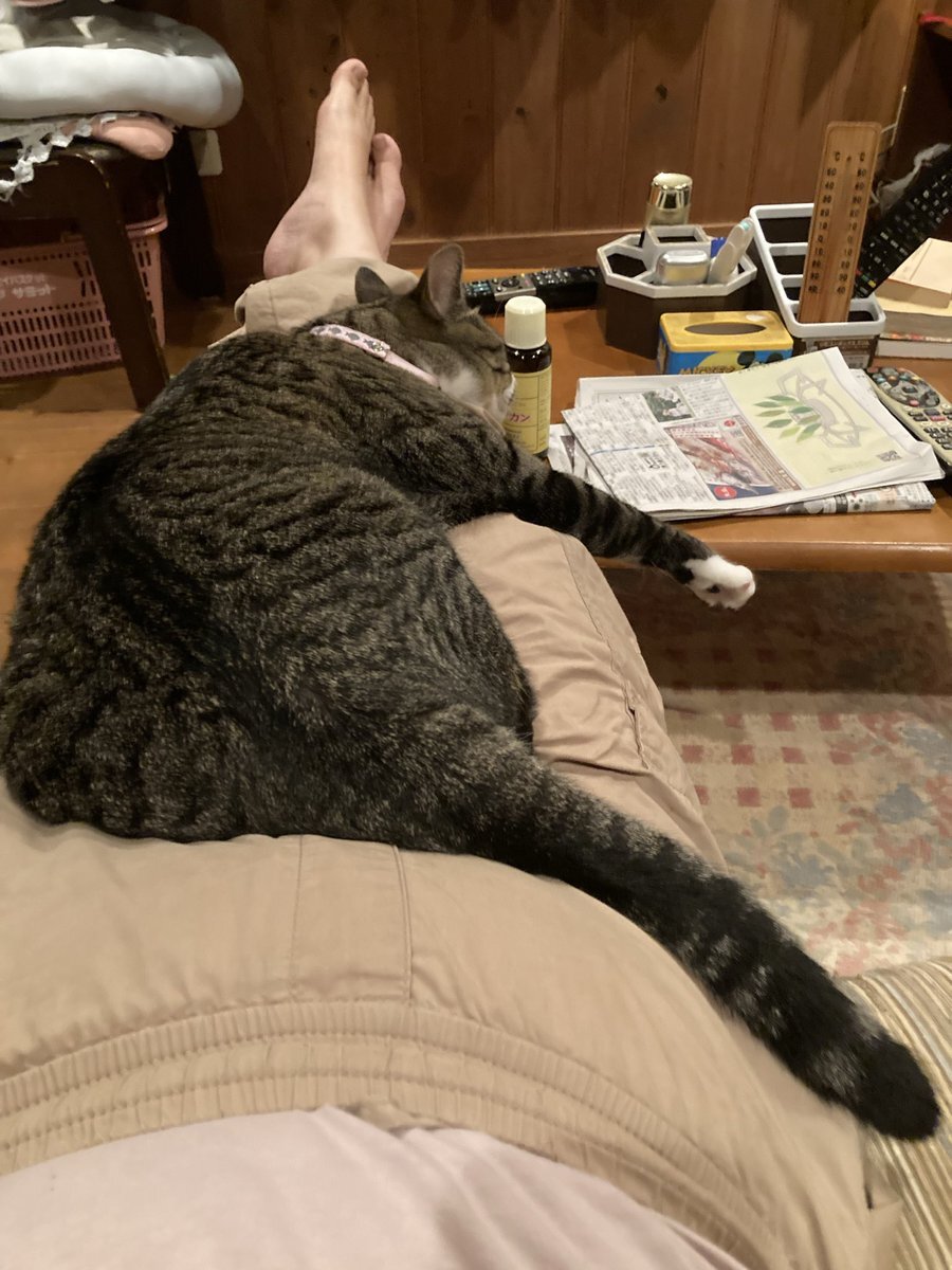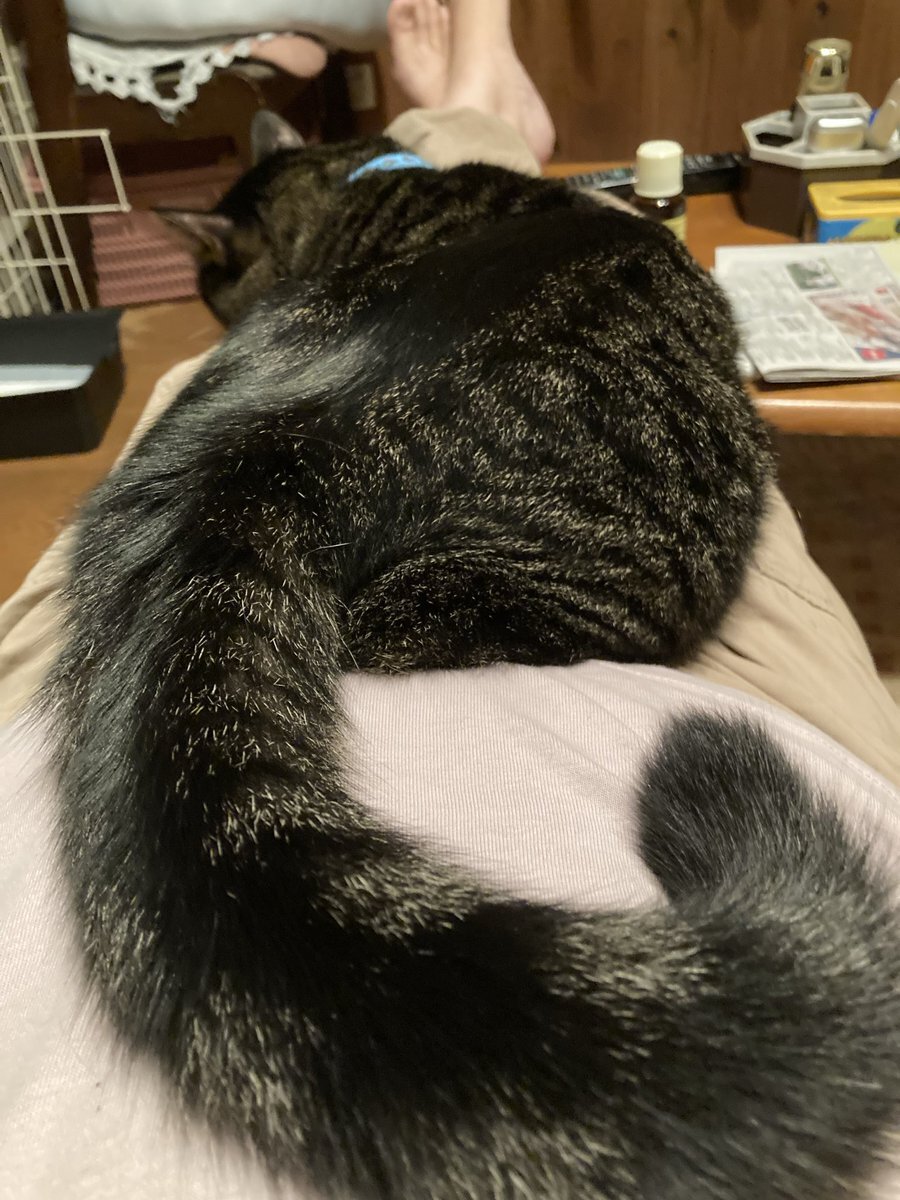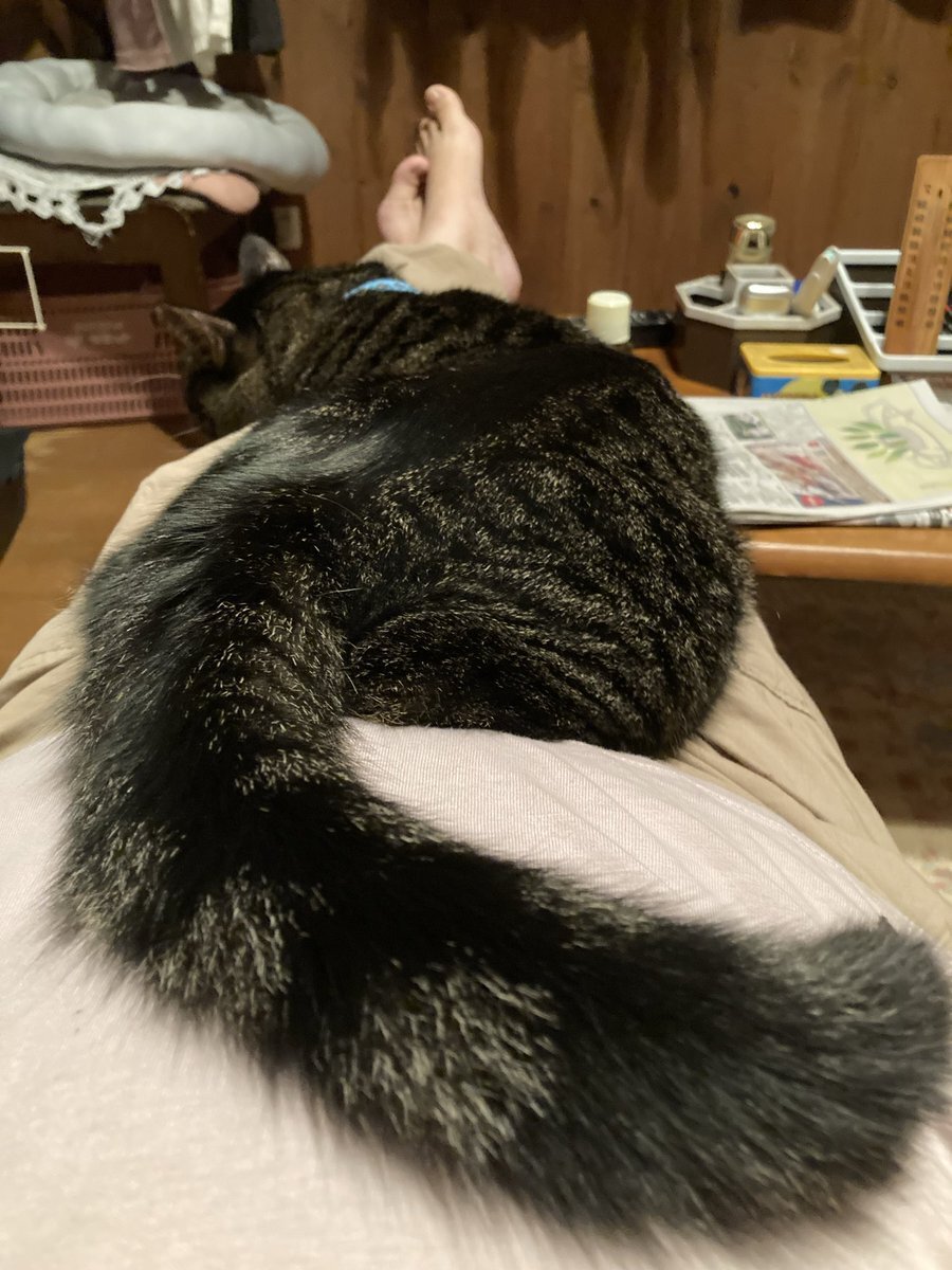 同じ兄弟猫でも脚に乗っかって寝る姿勢に性格の違いが出ると言うか、熟睡しているのか縞九郎さん、自分の順番が来た後は45分間以上ほぼ微動だにせずS字書いて今もこの状態 #猫のいる暮らし𓏲𓎨 #猫と楽しく暮らそう pic.x.com/GgV6hUEa0B