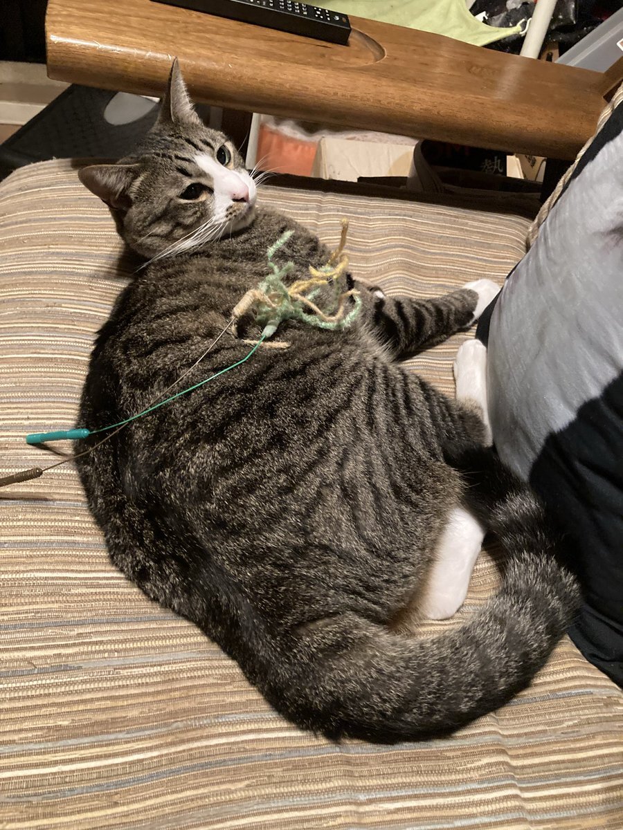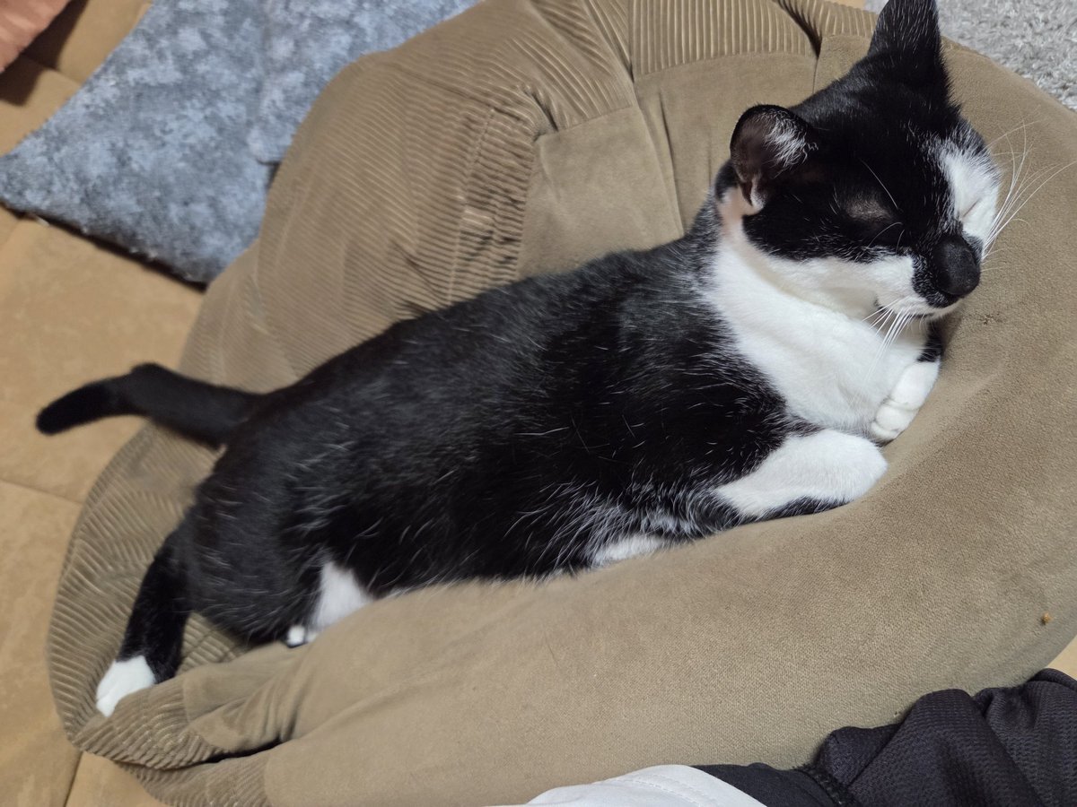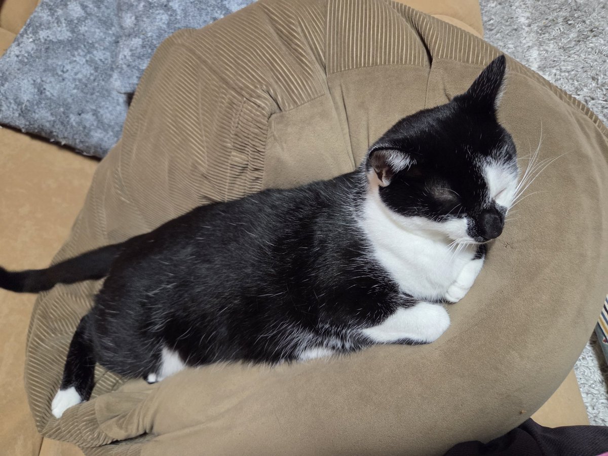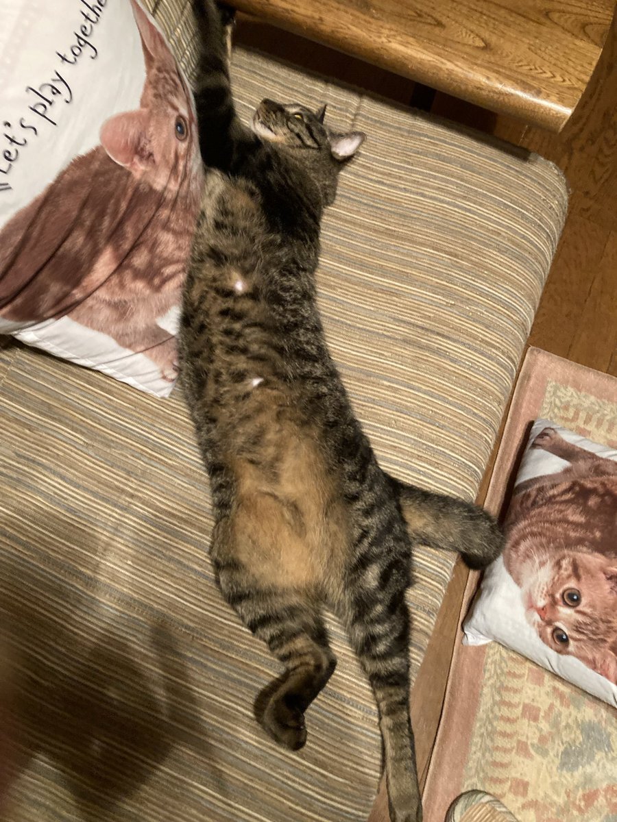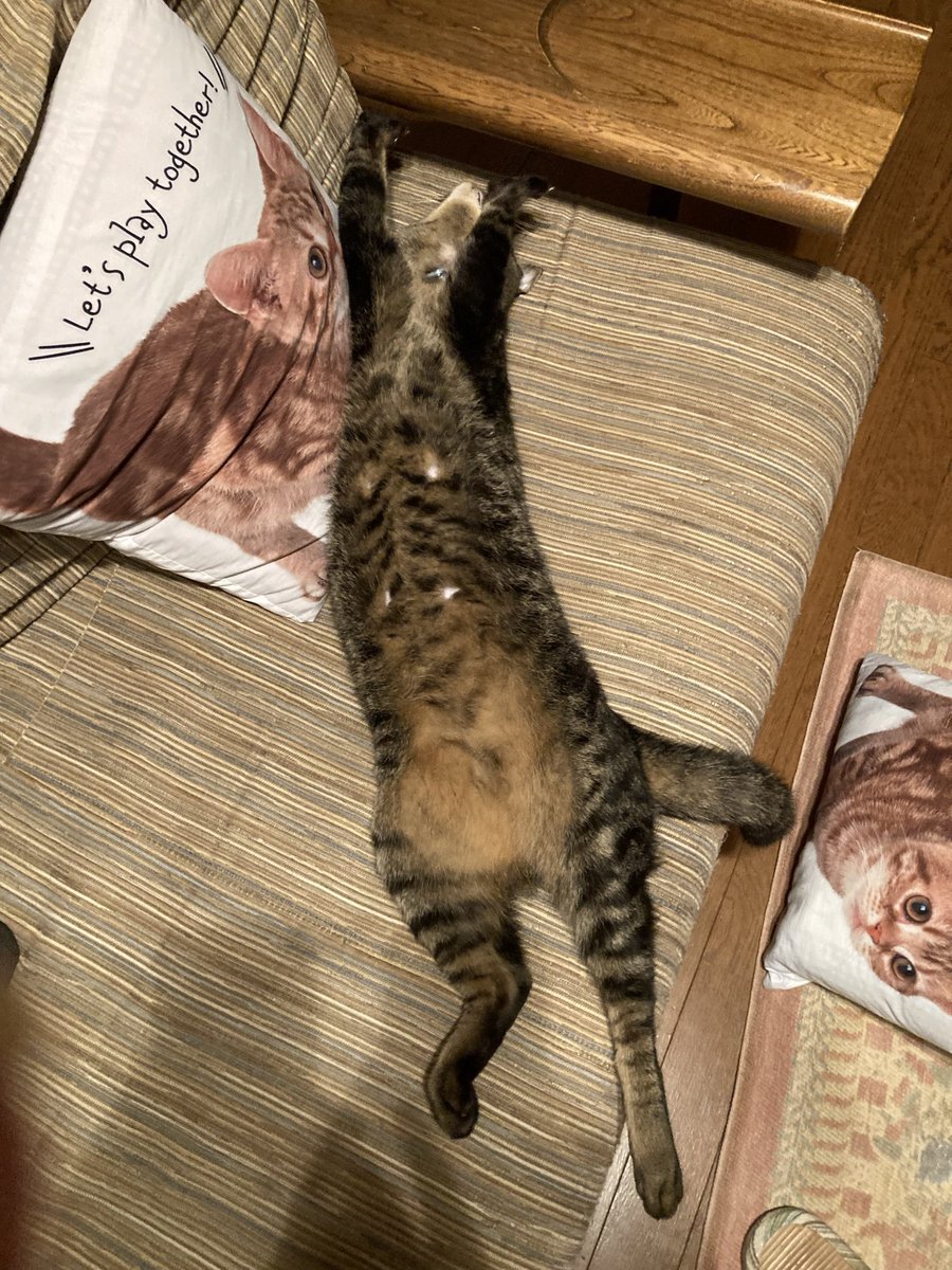 同じ兄弟猫でも脚に乗っかって寝る姿勢に性格の違いが出ると言うか、熟睡しているのか縞九郎さん、自分の順番が来た後は45分間以上ほぼ微動だにせずS字書いて今もこの状態 #猫のいる暮らし𓏲𓎨 #猫と楽しく暮らそう pic.x.com/GgV6hUEa0B