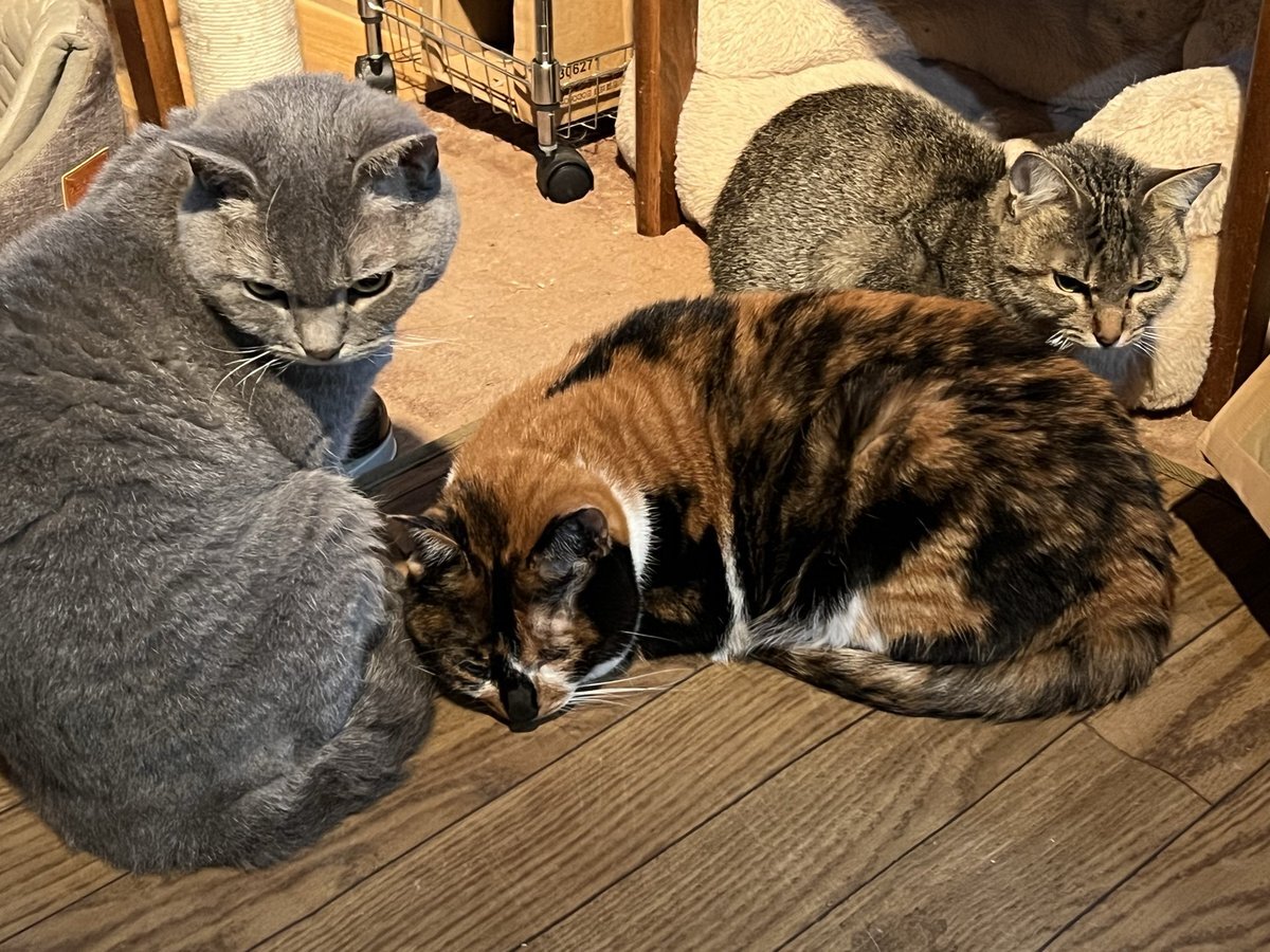 起き抜けに胃液を吐いたマドモアゼルまど、胃薬とかをすり潰してお湯にとかしてシリンジで与えて、巣に戻ったところを撫でてたらジェラシーモモも参戦。 昨日のペチュニア元気です。あとクマバチがボッグセージに顔突っ込んでうっとりしてた。 #犬のいる暮らし #猫のいる暮らし #猫と犬のいる暮らし pic.x.com/TmHGMTWI1h