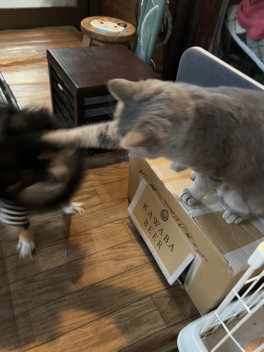 えいっ❣️朝から炸裂するよつば🍀のパンチ👊「仲良しの挨拶なのらよ😼」⁉️‥仲良しです💕 🚙🌬️👋 #猫と犬のいる暮らし pic.x.com/tsLaUtSU8g