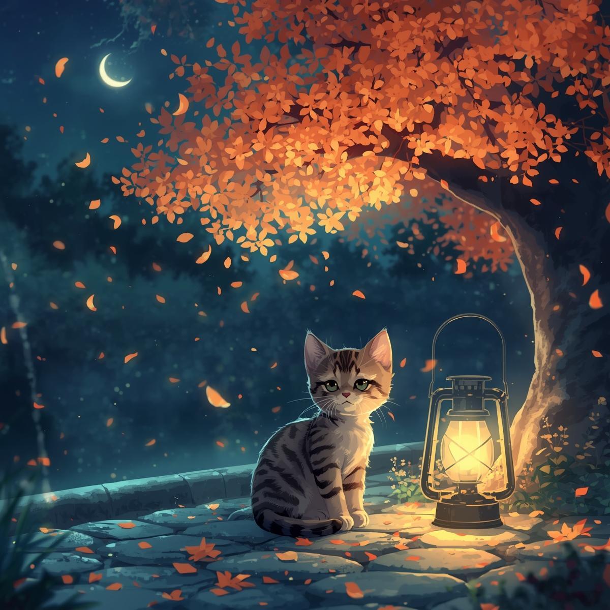 こんばんはにゃん😺 外の風が冷たくなって来ましたね🍂 今夜の月は三日月です 月の光に照らされてなんだかほっとしてます🌙 ゆっくり休んで、あしたも穏やかに過ごせますように🐾 #子猫の癒し #AIイラスト