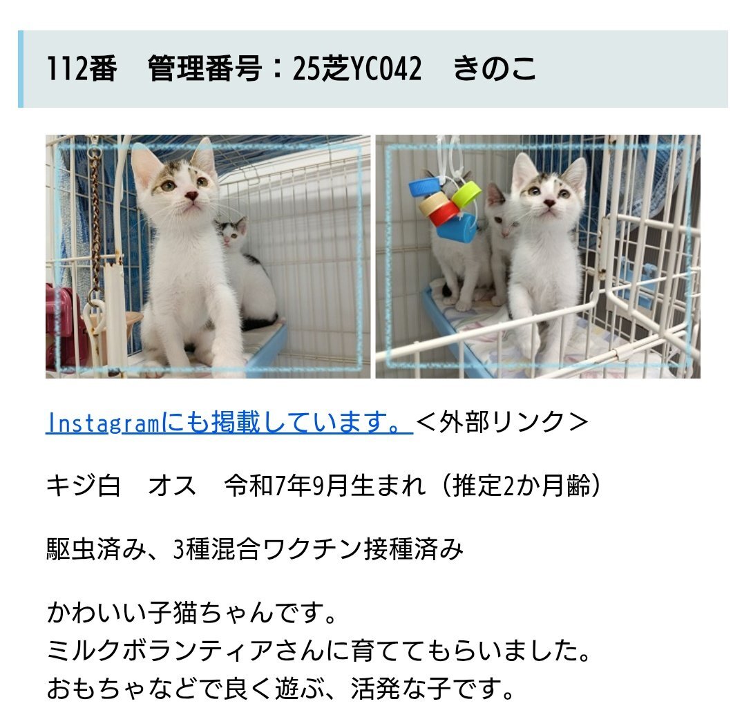 #新潟県 #譲渡猫 #譲渡可能猫 #猫の飼い主さん募集 #下越動物保護管理センター #新しい家族を待っています 🔴連絡先🔴 #下越動物保護管理センター ☎0254-24-0207 pref.niigata.lg.jp/site/shibata-k… 🟢きのこくん🟢 pic.x.com/jXtf20aXci