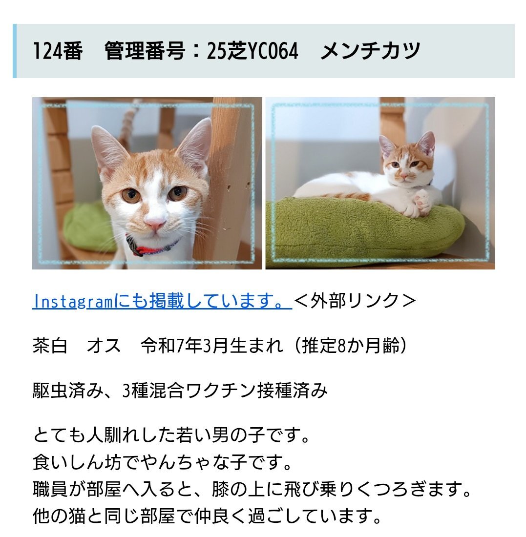 #新潟県 #譲渡猫 #譲渡可能猫 #猫の飼い主さん募集 #下越動物保護管理センター #新しい家族を待っています 🔴連絡先🔴 #下越動物保護管理センター ☎0254-24-0207 pref.niigata.lg.jp/site/shibata-k… 🟢メンチカツくん🟢 pic.x.com/xdZwu211AG