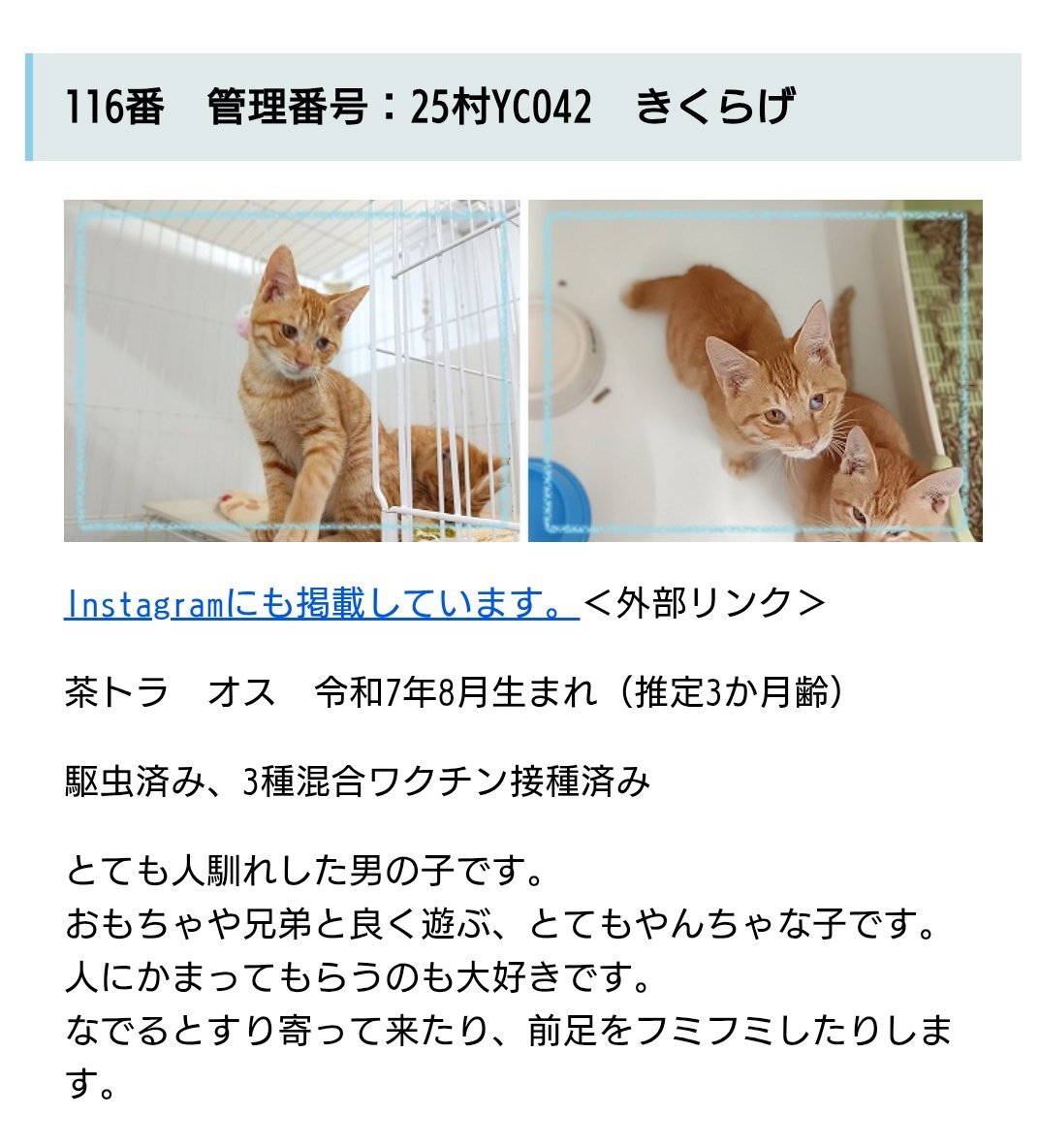 「とっても人懐っこい【天音(あまね)】くん」 岡山県 - 猫の里親募集(526561) pet-home.jp/cats/okayama/p… ★掲載期限:11月17日 ★明後日まで 愛護センター収容 #譲渡猫 #里親募集 #猫の里親 #猫の飼い主さん募集 #拡散希望 #岡山県 #岡山市