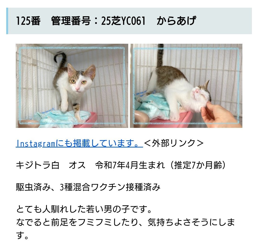 #新潟県 #譲渡猫 #譲渡可能猫 #猫の飼い主さん募集 #下越動物保護管理センター #新しい家族を待っています 🔴連絡先🔴 #下越動物保護管理センター ☎0254-24-0207 pref.niigata.lg.jp/site/shibata-k… 🟢からあげくん🟢 pic.x.com/dexJwxF2T3