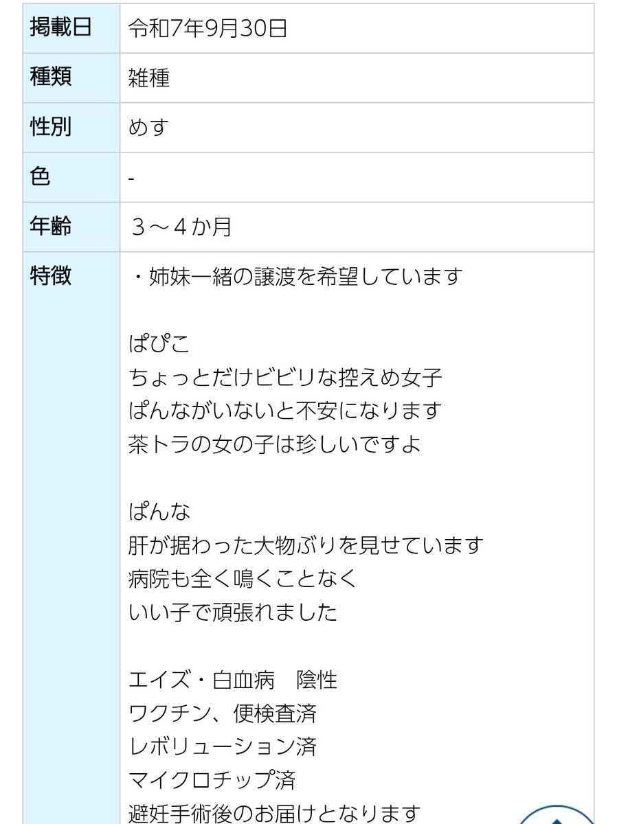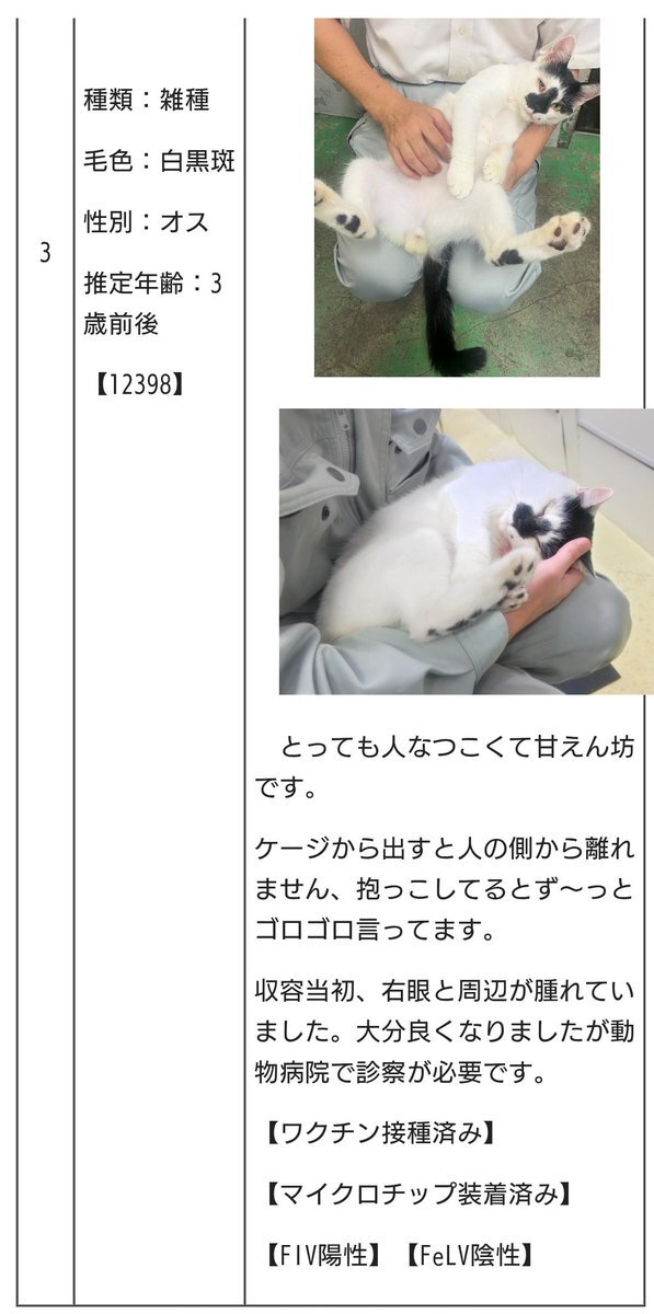 拡散希望📣📣📣 #宮城県 #仙南保健所 #譲渡動物情報 #譲渡犬 #譲渡可能犬 #譲渡猫 #譲渡可能猫 #犬の飼い主さん募集 #猫の飼い主さん募集 新しい家族との出会いを待っています 🔴連絡先🔴 #仙南保健所 ☎0224-53-3119 pref.miyagi.jp/soshiki/sn-hoh… 12398 ※猫エイズ陽性 ご理解のある方を待っています