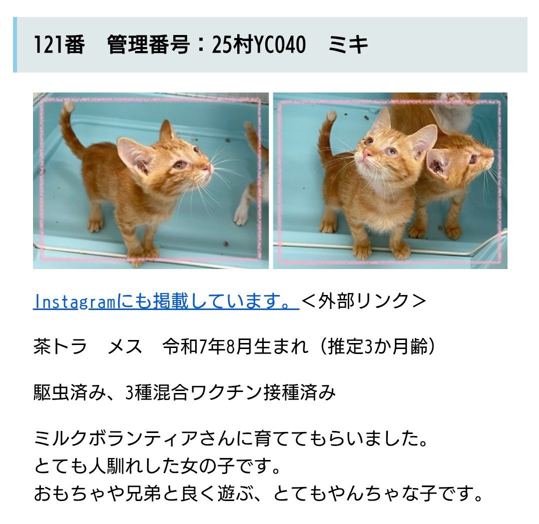 #新潟県 #譲渡猫 #譲渡可能猫 #猫の飼い主さん募集 #下越動物保護管理センター #新しい家族を待っています 🔴連絡先🔴 #下越動物保護管理センター ☎0254-24-0207 pref.niigata.lg.jp/site/shibata-k… 🟢ミキちゃん🟢 pic.x.com/qJBO6t1wLu