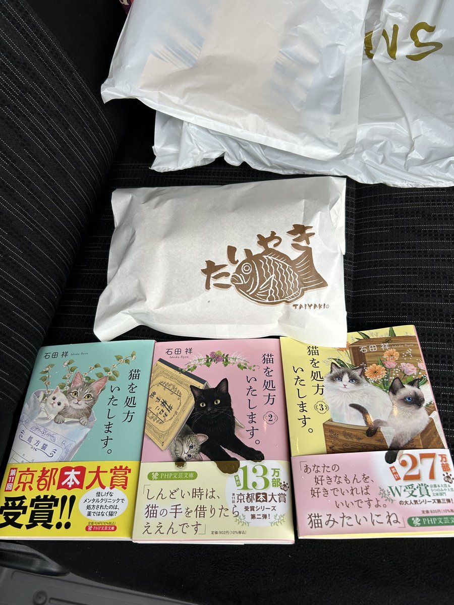 尊敬するフォロワー(読書アカ?w)さんのレビューを読んで すぐ読みたくて書店へ! とりあえず①〜③を購入!! たい焼きとコーヒーとともに楽しみます😊 #猫を処方いたしますpic.x.com/qOUVTL57LU